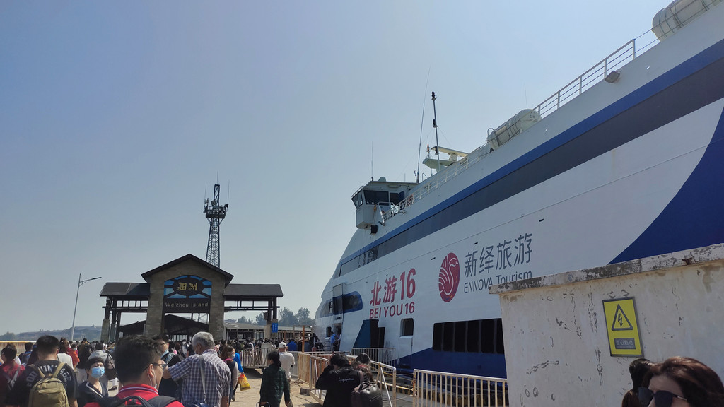 饭后在餐厅小憩,坐等登船的时间,涠洲岛之旅正式拉开帷幕。侨港与码头就隔着一条马路的距离,开车过去不到三分钟。