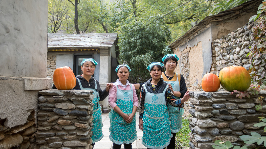 当天选择住在山下2公里以外的黄栌花开入住,隔壁就是大名顶顶的姥姥家小院儿。每次一到停车场事先得到风声的大姐就迎出来了,热情的带我到了熟悉的5号院,只因我喜欢这位大姐(左一),每次来都选在这个院子。5号院儿共有三间卧室、一个客厅、一个厨房,算上软塌住七个人完全没问题。房间内洗涑用品一应俱全,完全不需要再额外带什么了。