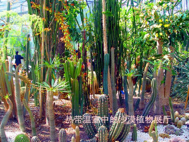 位于顶层的热带沙漠植物展室又名仙人掌和多浆植物室,面积1200平方米,栽植及展示仙人掌类及多浆植物1000余种(含品种),主要原产于热带和亚热带的干旱及半干旱地区。