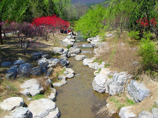 在此基础上,2003年北京植物园为了恢复樱桃沟自然风景区原始风貌,又进行了北京植物园水系二期工程,使得青山绿树间出现了八湖争秀,流水淙淙的难得景象。尤其是断流多年的京西名胜樱桃沟,又重现了流水潺潺,百鸟争鸣的这一堪称人间仙境的优美景象,形成了湖、潭、池、瀑、叠水、溪流等动静结合、大小不一、空间富有丰富变化的优美水景。在这里飞瀑流泉、古木参天,小溪流水,栈道蜿蜒,四周各色花木争奇斗艳,使游客真正领略到了春天的无尽魅力。