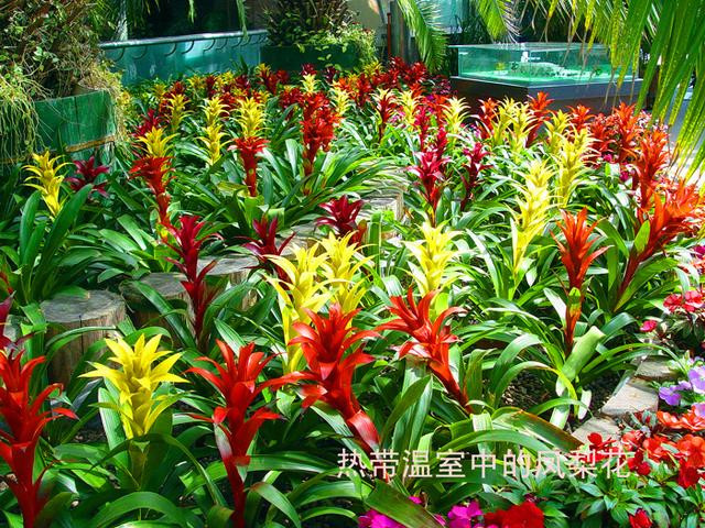 兰花凤梨及食虫植物展室面积为500平方米。这里通过小桥流水,枯木奇花等人工造景,为人们展示了一个绚丽而神秘的热带花园景象。本展室主要展示以兰花、凤梨为代表的热带附生植物,同时布置栽培极富趣味的食虫植物以及蕨类等其它植物。展示中包括有卡特兰、蝴蝶兰、惠兰、石斛兰、文心兰等兰科植物和果子蔓凤梨、丽穗凤梨、羞凤梨、光萼荷凤梨等多种凤梨科植物。此外,这里最值得一提的是那些千奇百怪的食虫植物。猪笼草、捕蝇草、瓶子草等几种以昆虫为食的奇特植物将向大家展现大自然的奇妙。