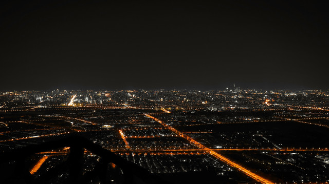 转头向下望去,华灯初上,喧闹的北京城又换上了另一副面容,一条条金色的彩带勾勒出城市的夜景,搭配上斑斑点点的灯光,此景甚是好看,好一个蓦然回首,美景就在灯火阑珊处。