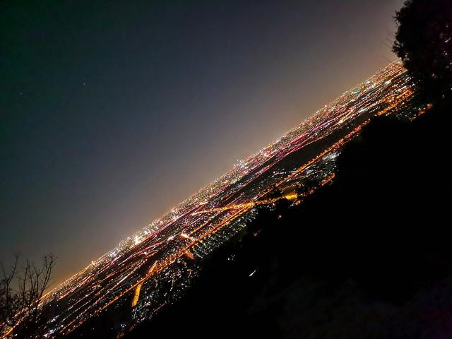 站在观景平台的最前沿向下望去,整个北京城灯火通明,横平竖直的道路规划让北京城的夜景极度具有线条美感。宁静的夜空中繁星点点,犹如闪耀的钻石挂在幽蓝的天幕上。虽然整个攀爬行程确实需要耗费一定体力,但能看到如此震撼的美景,也是不虚此行了。