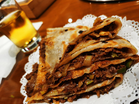 此京东可不是今时今日的京东,应该是指一个地方。咬了一口居然惊到了!薄薄的软软的饼皮,里边是实实在在的纯牛肉的馅儿,咸香多汁,一举击败了我此生吃过的所有肉饼和馅饼,馅料倒还好,各有特色,只是这饼皮这么这么的薄,果然是名副其实的肉饼了!