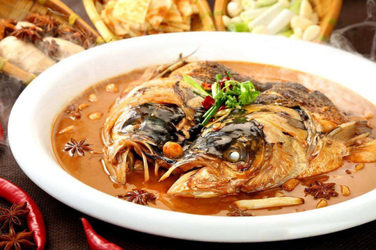 前两年还有一种特别流行的吃饼方式,鱼头泡饼。其实就是桌面般大的鱼头煲而已,吃的差不多了,把刚出锅的烙饼倒进入,浸着鱼汤吃饼而已,感觉形式大于内容。