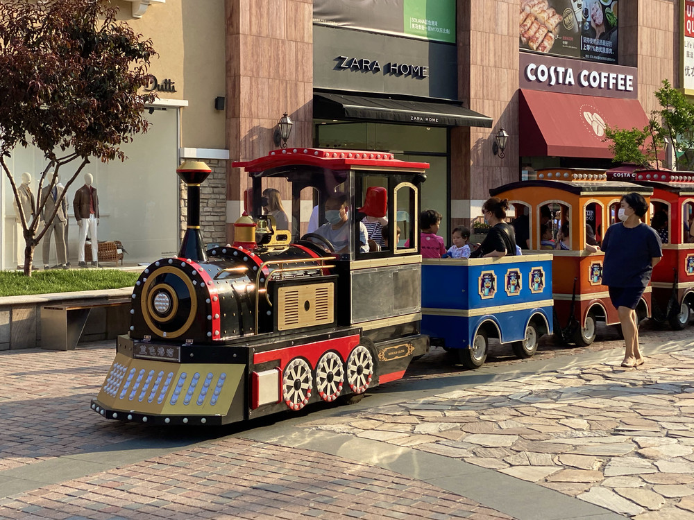 上周末,北京疫情降为三级,更多的家庭终于结束居家隔离,走出家门,享受欢乐时光。傍晚,蓝色港湾人流如潮。蓝天白云,孩子们乘上小火车,火车鸣笛欢迎大伙儿回到蓝色港湾游览,到处洋溢着喜庆欢快气氛。