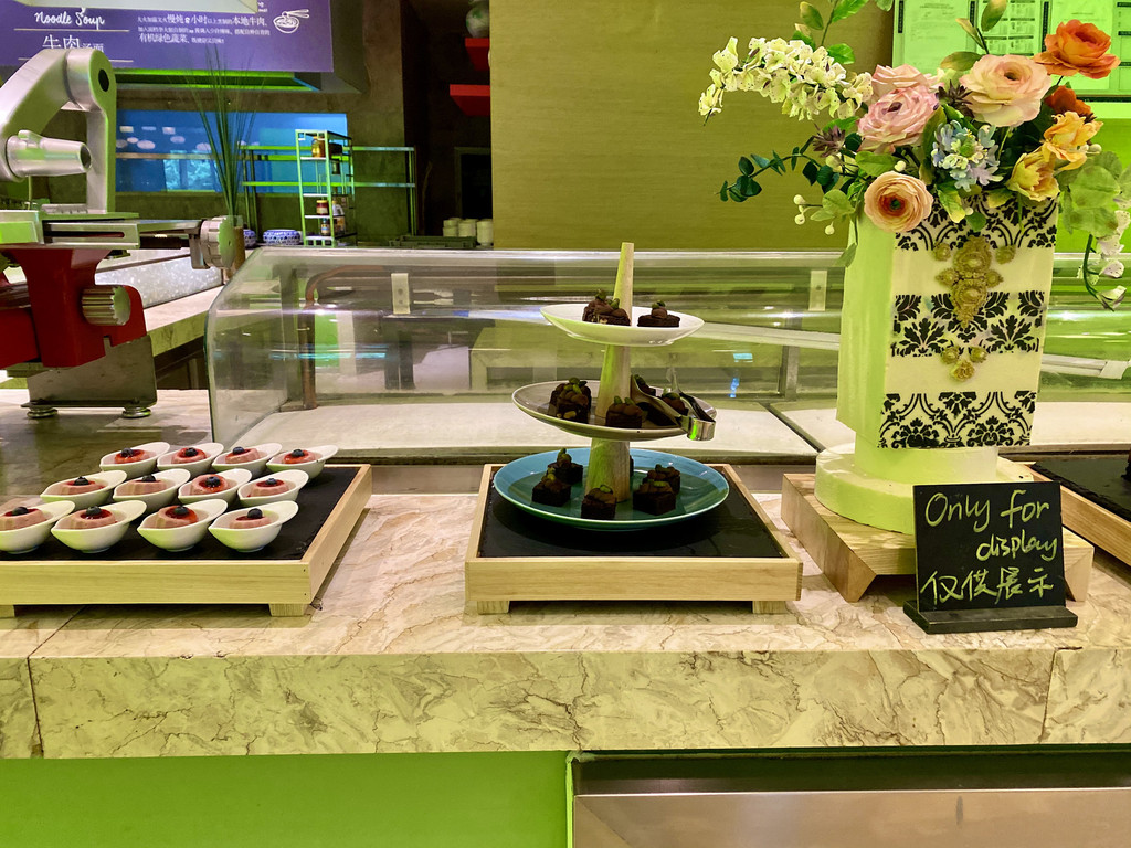 北京的大酒店餐饮还在恢复中。金茂威士丁大酒店正餐只有半自助,食客不多。环境很好,餐桌之间间隔足够大。在网上买到折扣券,人均不到七十元。