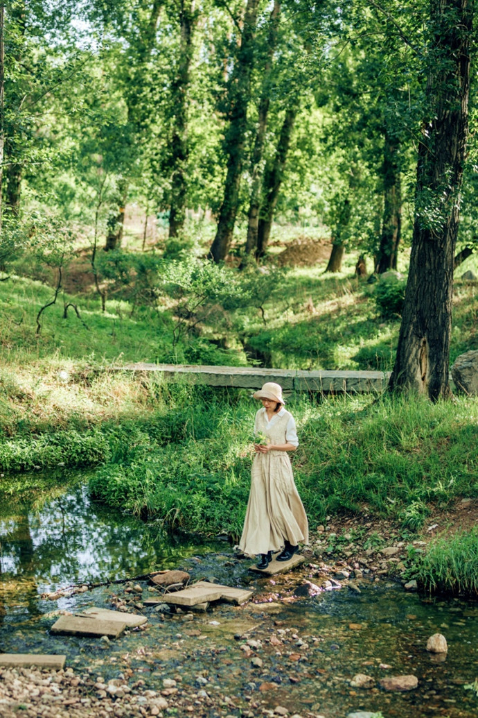 阳光被枝丫筛得细碎,星星点点地跃在行人身上、潺潺流水里、路边野花上,无论是行走、采花、戏水、野餐每个镜头都是森系大片!