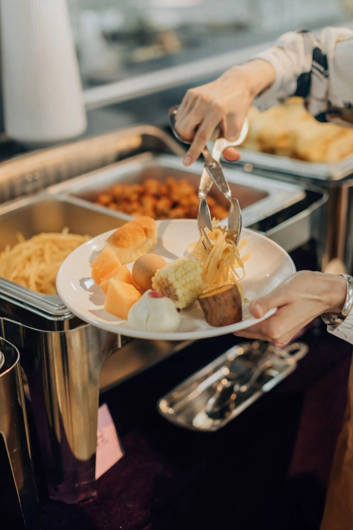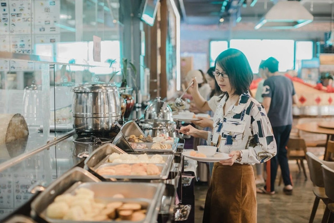 清晨的自助式早餐,从粗粮到水果,从牛奶、米粥到包子、小菜,样式齐全,让一天从开始就很美好~