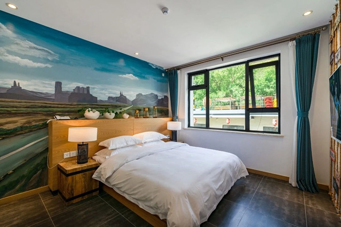 每种房型不仅是床型和面积上的差异,更有细节上的用心,以妫水河穿流为造型定制的茶几、汽车形态的纸巾盒、各类模型车摆件、欧铁装饰灯... 每一处都在诉说着民宿主对延庆、对汽车工业风的情怀。