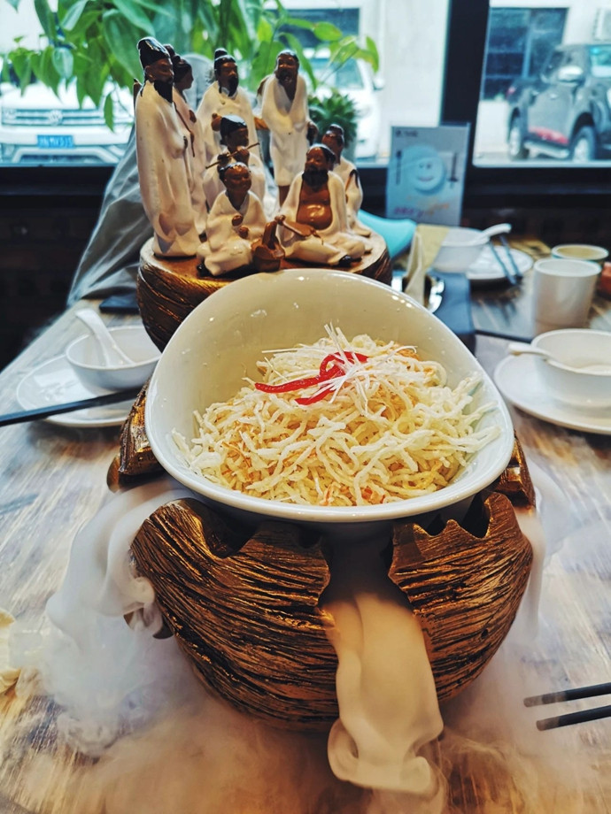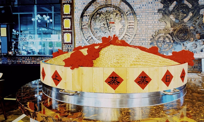 所谓“五味调和盐为首,五谷养生蒸当先。”,自游自在美食最大特色非“瓦特养生蒸锅宴”莫属!两个超级大蒸锅,可同时制作百人特色养生蒸宴。正好来的时候赶上人家团建,一睹了这样豪华的美食!