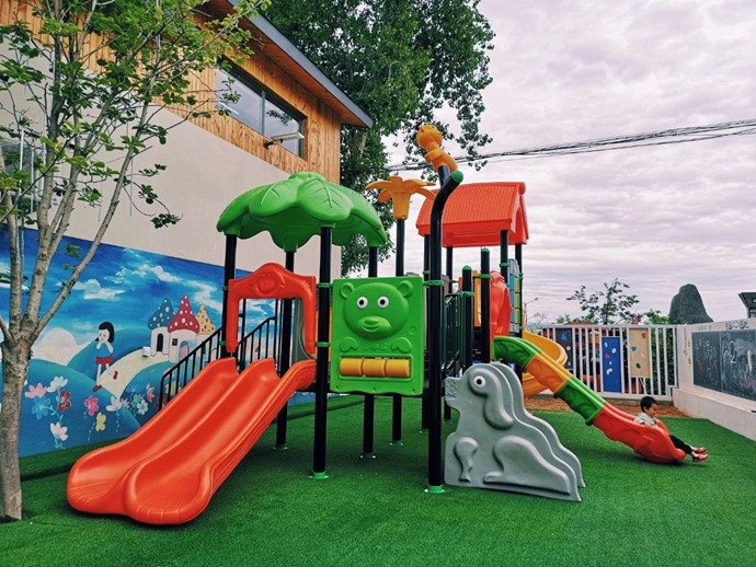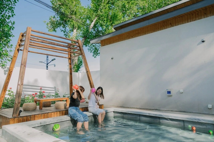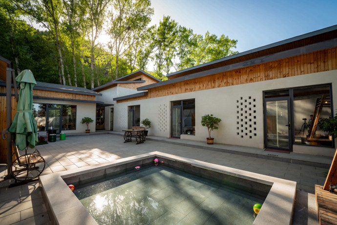 小院我们选了个最大的5居——智慧人家,预定时就听说它是院子里面积最大的,占地达426平米。院子最大特点是有一个露天水池,长宽足有3米有余,高度不足1米,孩子们玩起水来也不用担心溺水危险。
