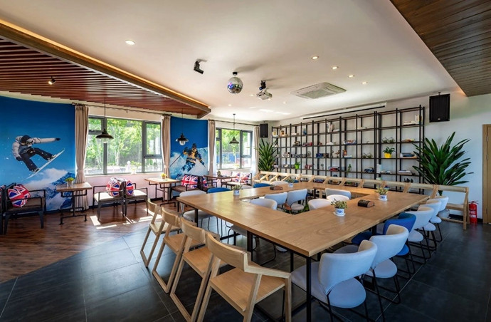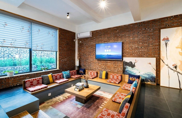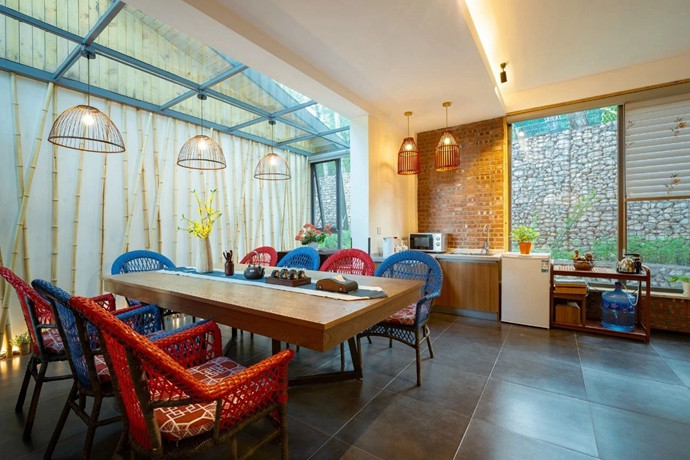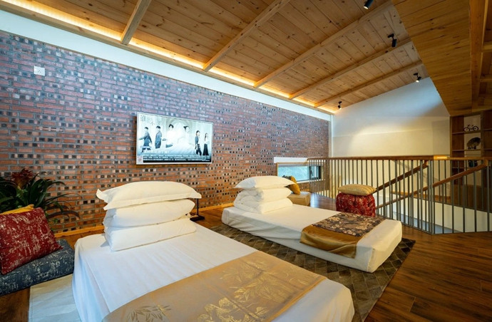 因占地广阔,民宿分独立院落和酒店型主楼两块,院子有5个,主楼共三层但配有电梯,此外,三层可唱K、能开会,又能充当小憩酒吧的多功能厅,开会or开趴随心切换!