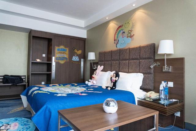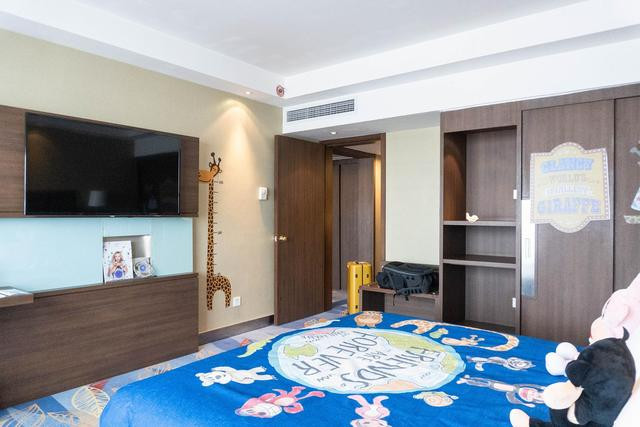 酒店的房间也顺应时代的流行趋势,做了很多的创新。我入住的是酒店亲子套房,由一个客厅和房间组成。亲子房最少不了的就是温馨的卡通元素,这点应该很受小朋友的喜欢。客厅摆放着儿童的帐篷和滑梯,在房间床上就是卡通玩偶,小朋友如果入住这个房间,那将是多开心的一件事啊。推开窗户能看到北京的景山和故宫,近处则是充满生活气息的胡同。