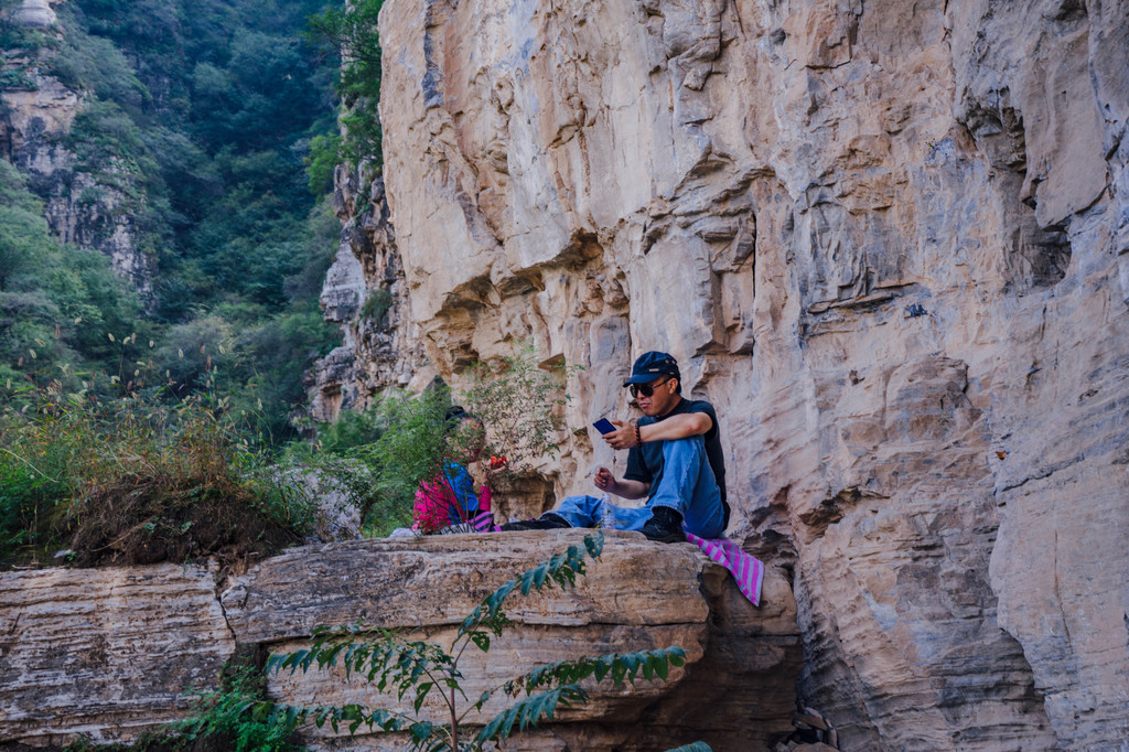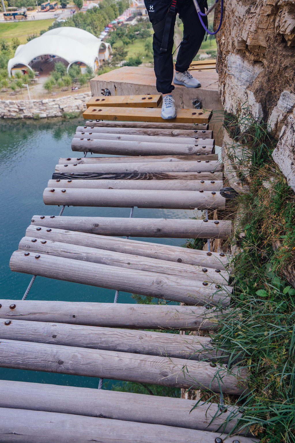 还有一处户外体验运动——崖壁穿越,也能看到这个景象。总长度200余米,悬高百米,入口在悬锁桥处,其他很安全,可以要求工作人员指导陪爬。99元/人。