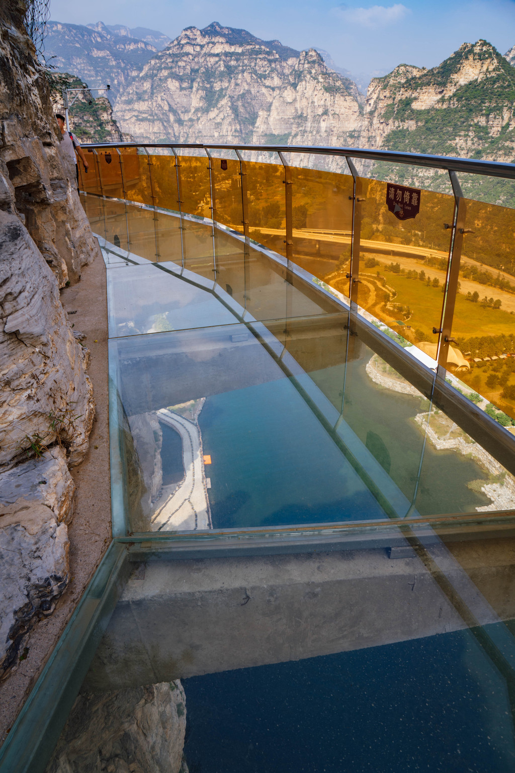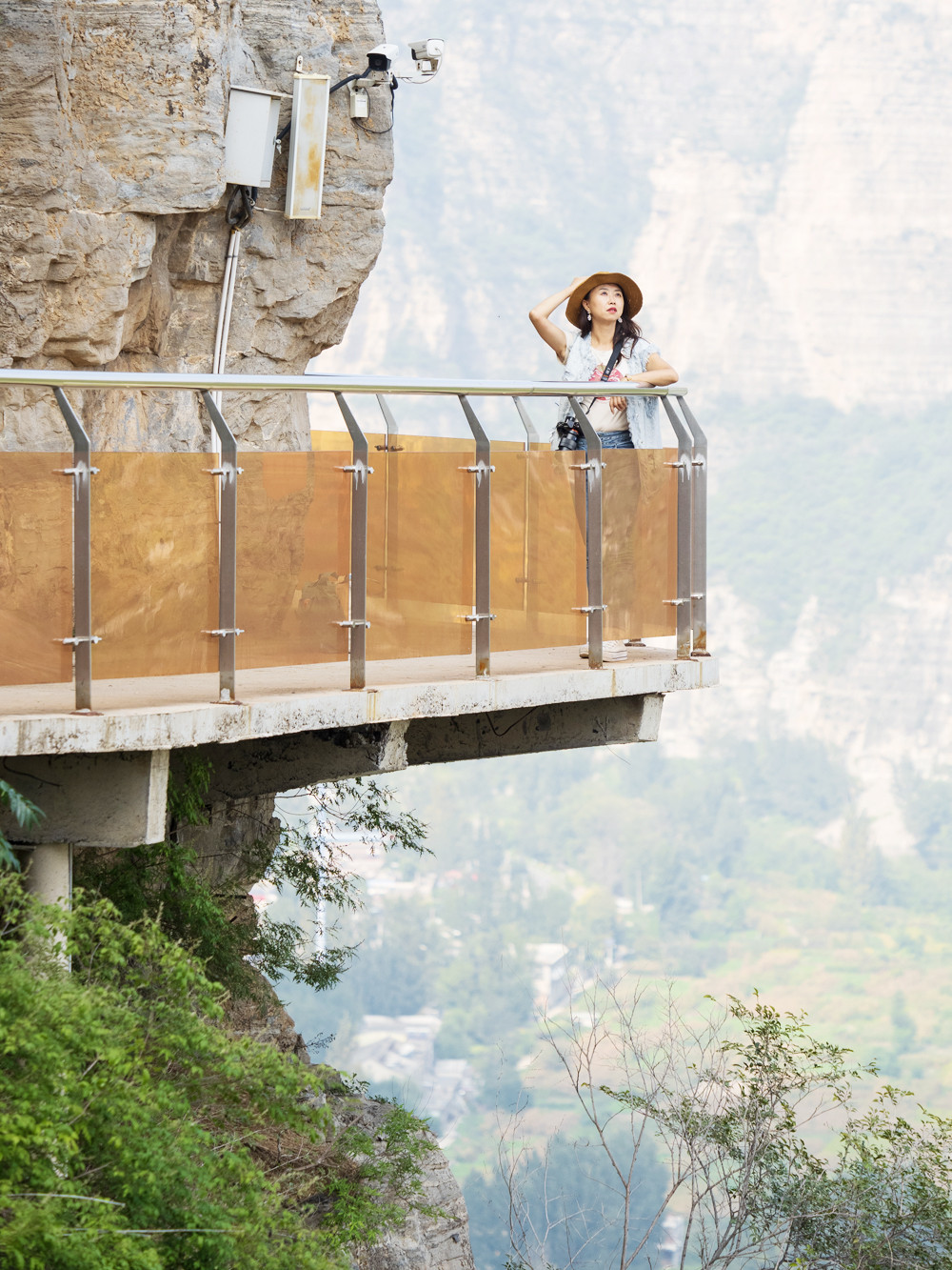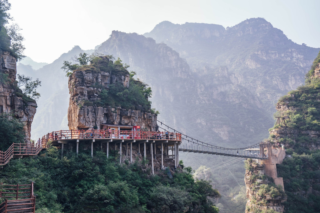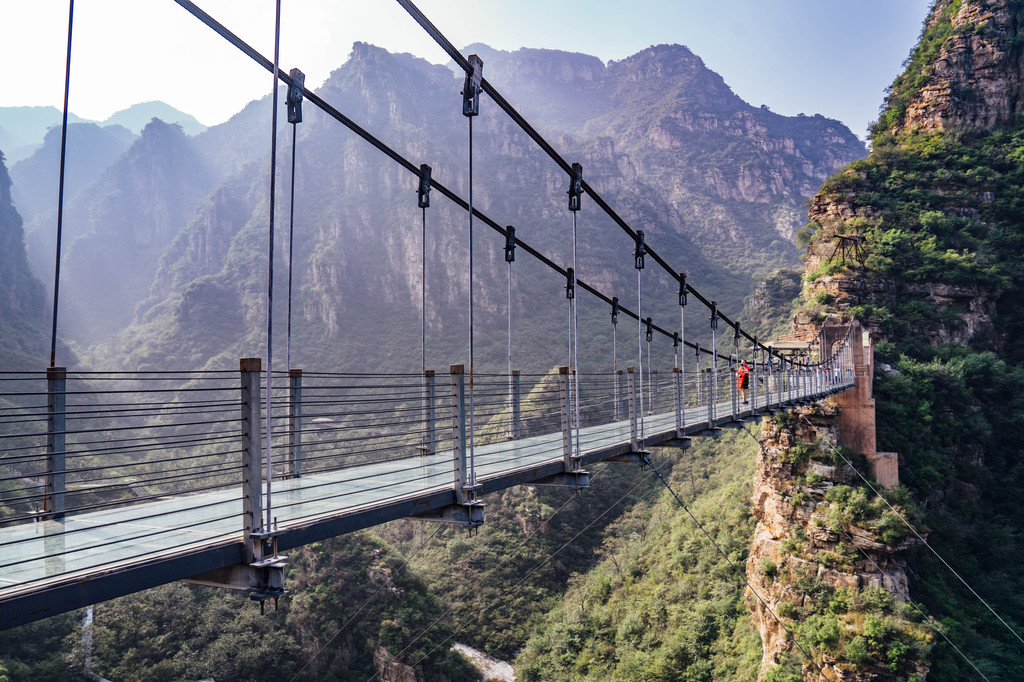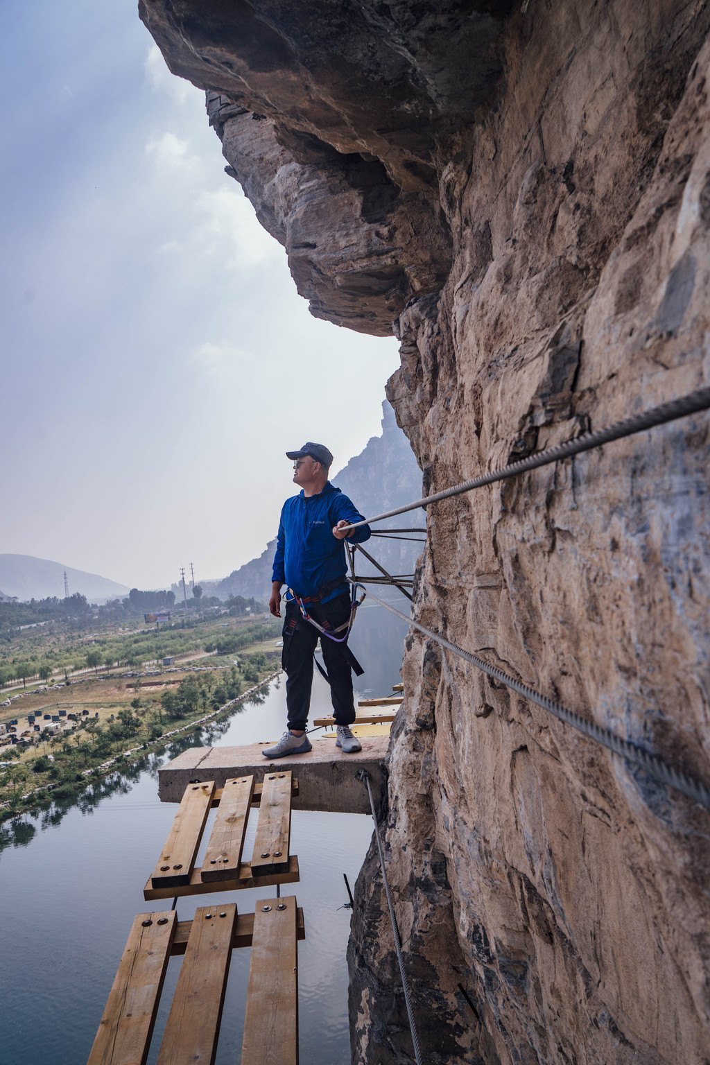 3、青云玻璃栈道:这条栈道位于挨着拒马河的一座山峰高处,有“悬空栈道”之感,走上栈道之前需要换上鞋套,栈道入口和出口都有人提醒换鞋套。