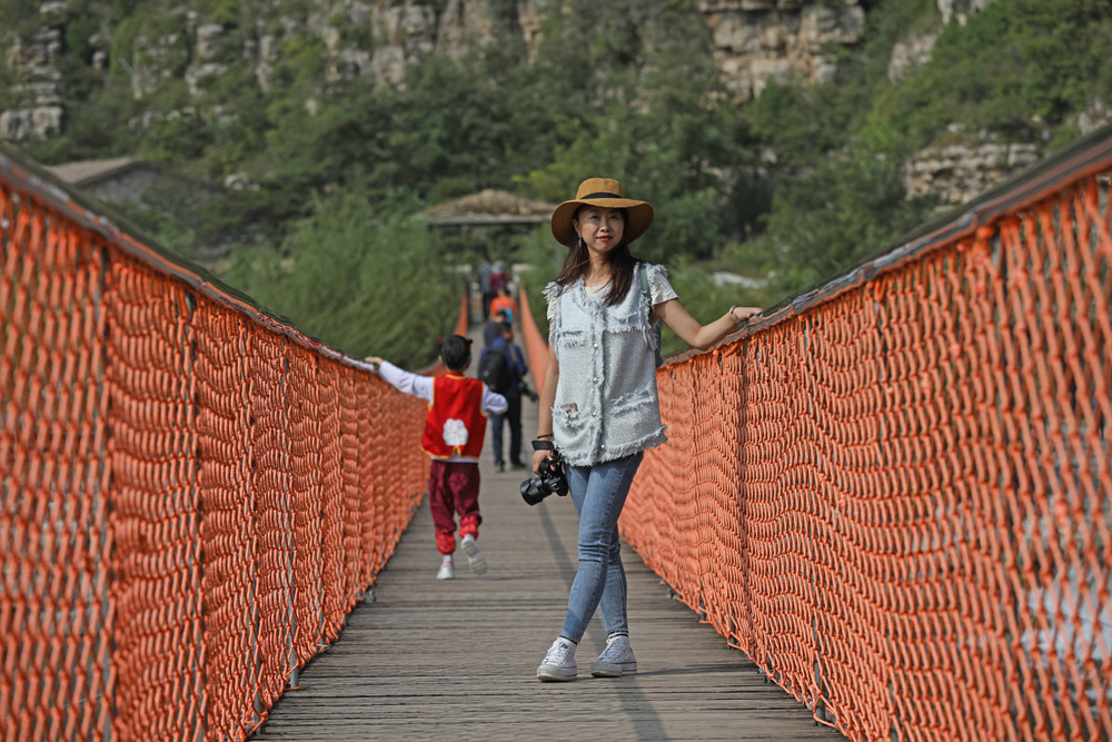 一个叫拒马河铁索桥,走起来晃晃的,拍照很好看。