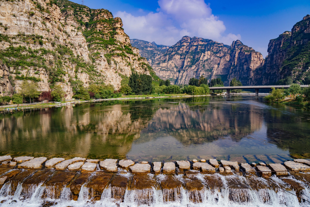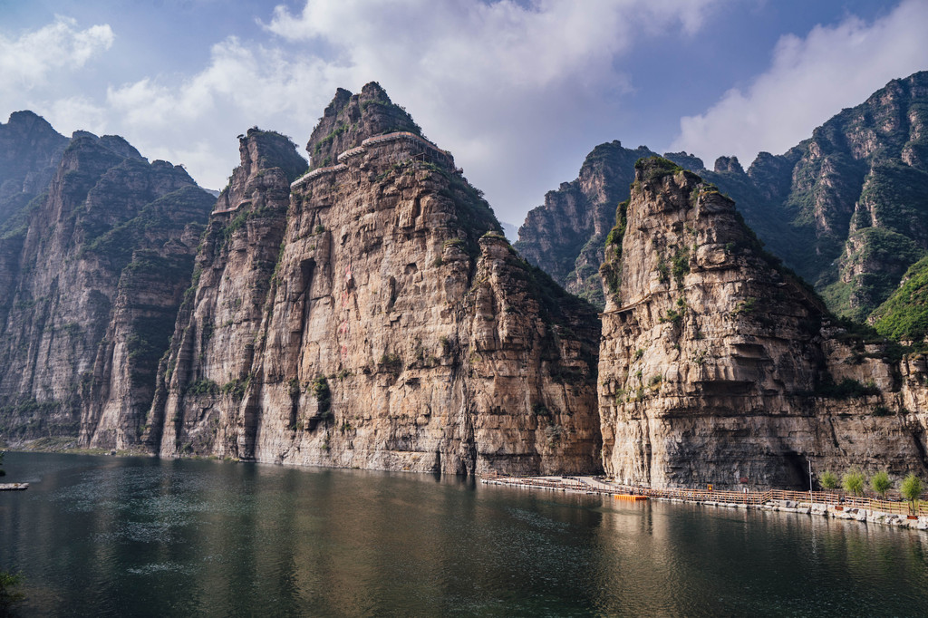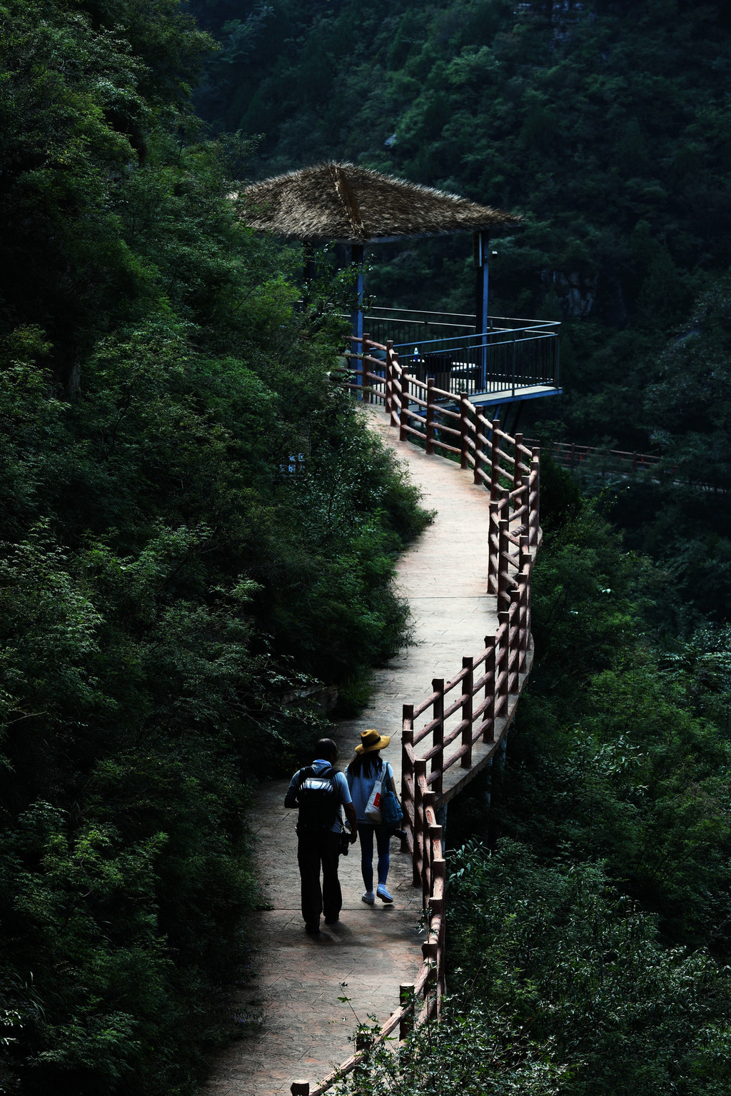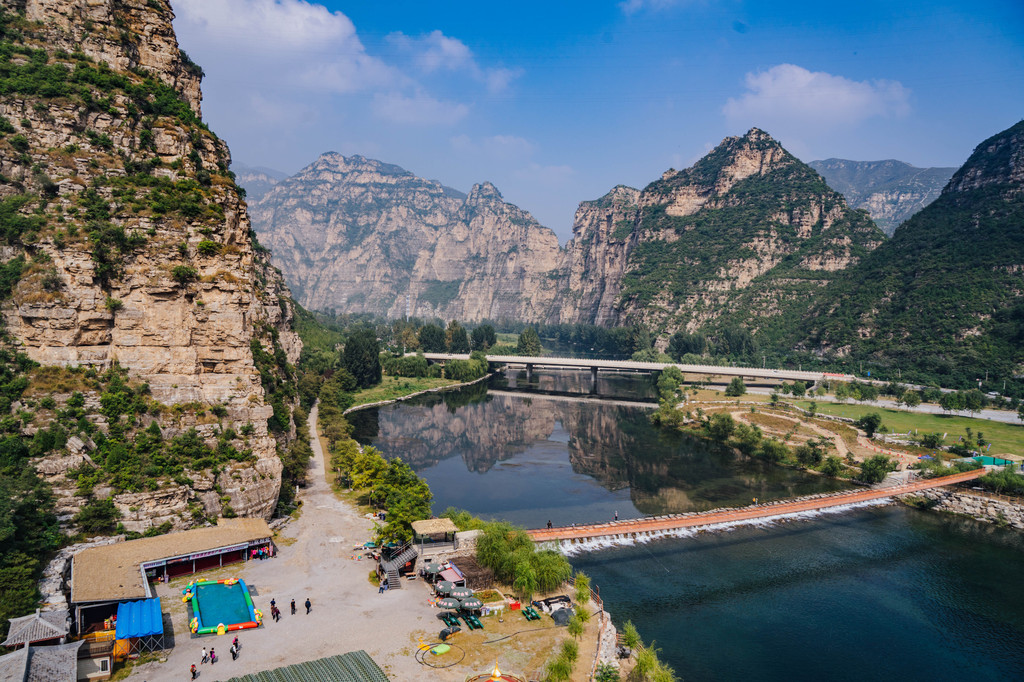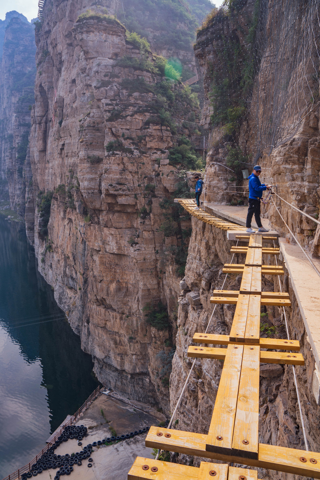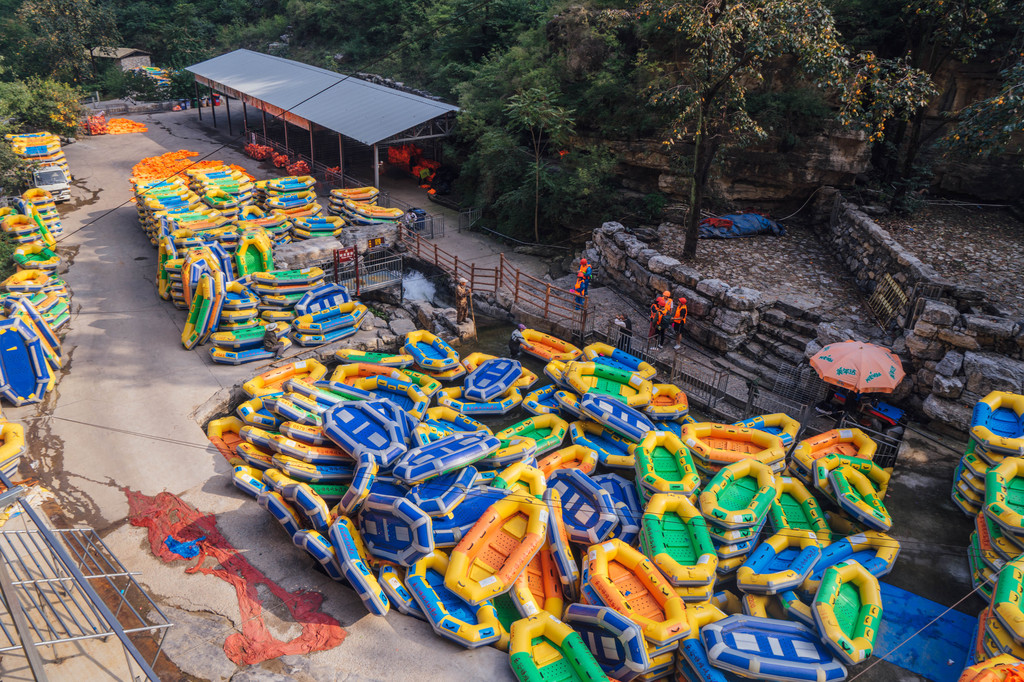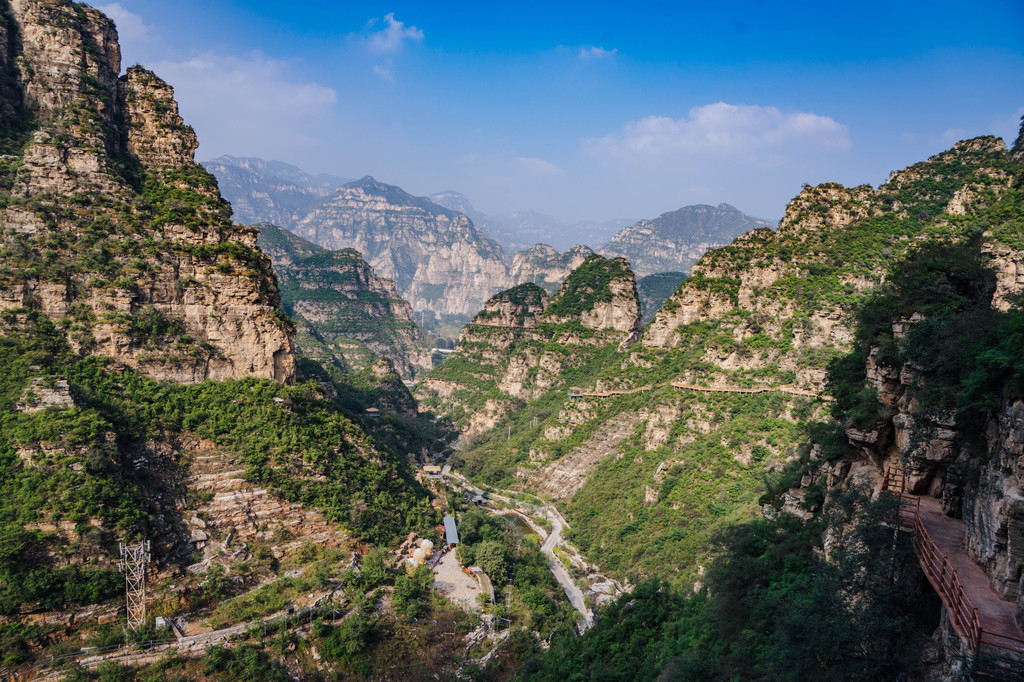 景区内8000多米的登山栈道,一步一景。走入深处,青山对峙,绿树滴翠。而在太行山脉天子峰下的大峡谷当中,有”天子脚下第一漂”,全长约3.8公里,300多个极速叠差。