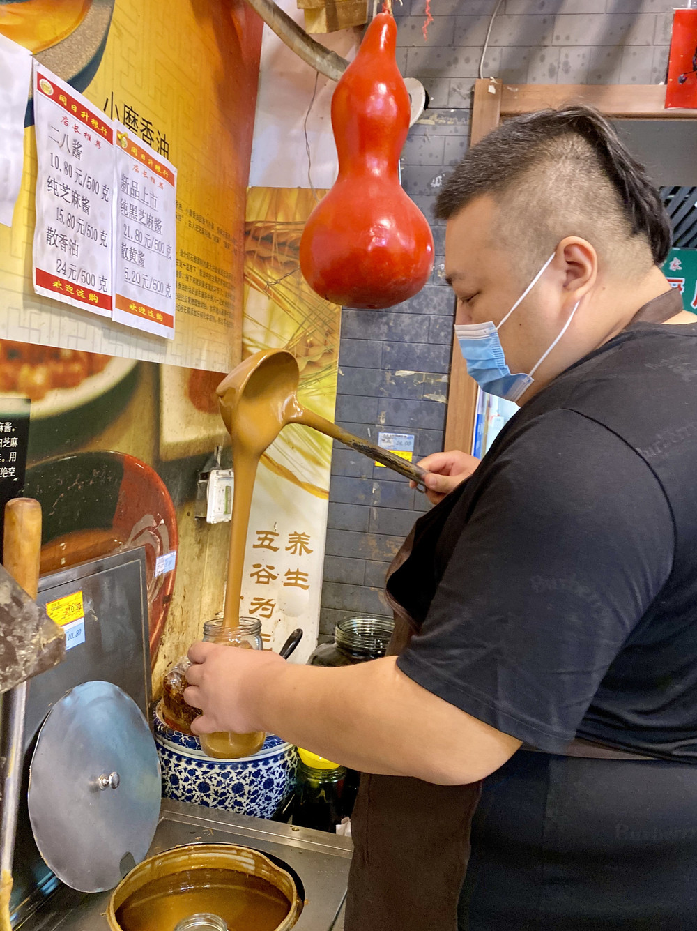 网上经常有这家店供应二八酱排大队的信息。八成花生酱和两成芝麻酱混合而成,有装好瓶的,也可以论斤称重购买,还有零打的黑芝麻酱,黄酱和香油。这些北京人日常使用的食材物美价廉,大受欢迎。