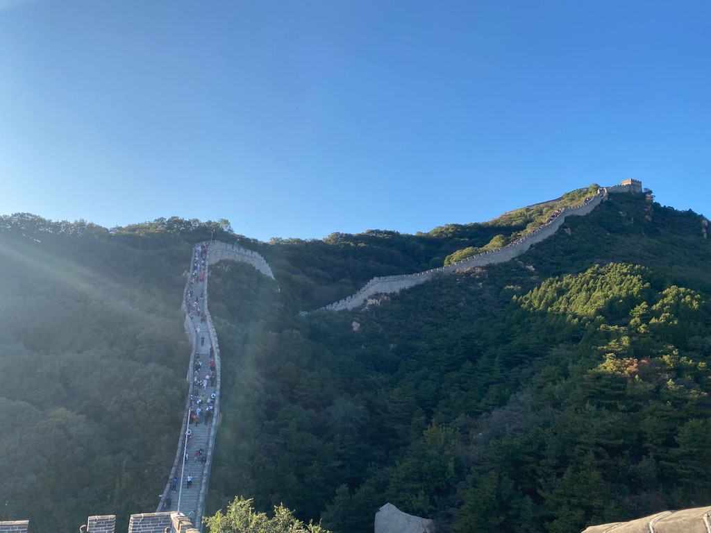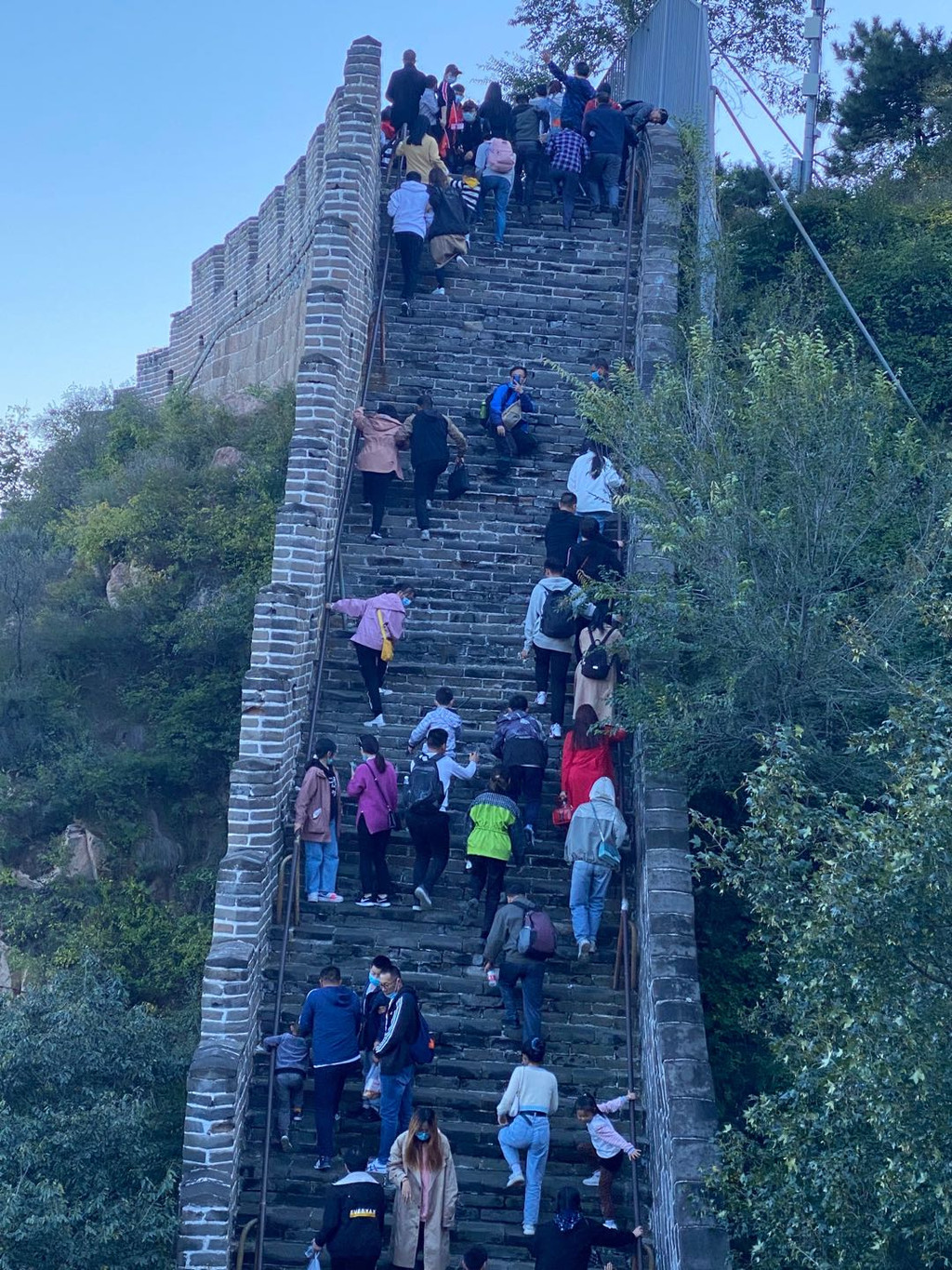 9点早餐后退房,10点半出发颐和园,11点半才到达颐和园(时间计算失误,节假日景点到处封路,浪费不少时间),颐和园的人很多,匆匆走了一小半圈,就出来直奔八达岭长城(考虑到路上塞车等因素午饭都忽略了),京藏高速快到八达岭长城果然塞了一会,不过还算好的,大概半个小时吧。3点半到达八达岭长城。从停车场坐接驳车直达了索道入口,主要考虑到大家的状态还有小孩,全程爬上去可能比较吃力。索道果然很快,不到2分钟,就把我们送上了北8楼,出来后就看见乌压压的一片人,这时才感觉到长假出游的人数的庞大。跟着人群一个劲的向前走,台阶真的很高,小朋友有时要手脚并用才能上去,窄的路口还得堵着,慢慢通行。就这样,大概5点半左右,我们就下到了长城脚下。如果时间充裕体力充沛,还是建议徒步上长城,没有想象中的那么难爬。下来等接驳车,居然塞车,等到停车场拿到车已经是7点半了。打电话给今晚入住的八达岭岔道府民宿,找了小电瓶车来带我们进入八达岭古镇,车辆不能进镇,要停到外面的停车场。整个小镇基本都是民宿,很安静,晚餐在民宿吃,川菜、京菜都有。味道还可,价格偏高,饭随便吃。