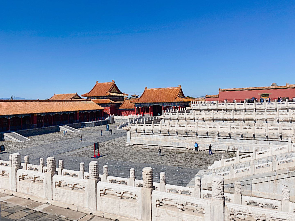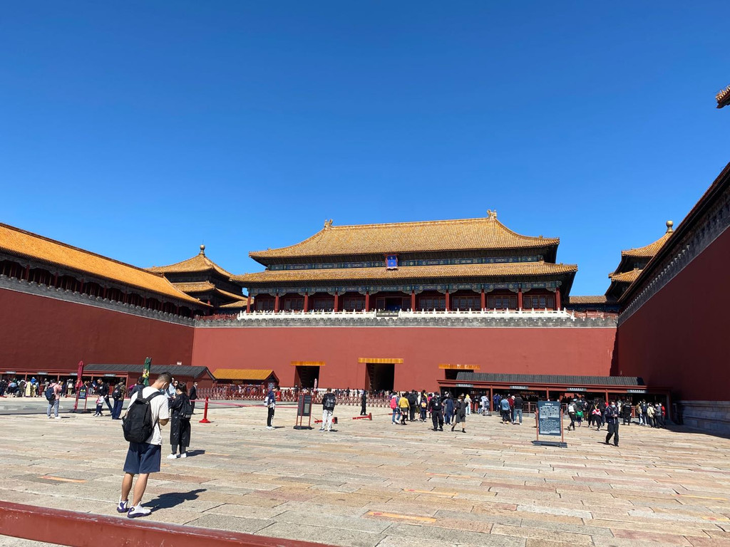 4点半起床看升旗仪式,男人们带着小孩去看了,女人们起不来就继续睡觉(北京今天降温了,薄羽绒就穿上了)。8点半回酒店早餐,10点出门参观故宫。因故宫限流,只预约到了下午场的门票(12点入场),这个时候逛过去安检什么的差不多可以进场,事实证明根本不看预约时间。限流的关系,故宫安检的人也不多,我们很快就进去参观了。一直到5点才大体的逛完。记住要租一个讲解器,每到一个点都会自动播放讲解。出来故宫原计划去景山公园的,但是没有提前预约门票也无法进去了,而且大家已经累的走不动了,于是直接晚餐,北海涮肉(美术馆店),因为到的比较早,刚好还有一个包间,等我们出来已经排了很多人了。这时租车公司的人已经把我们租的车送到餐厅门口了,这点还是不错的,接下来3天可以自驾出行了。