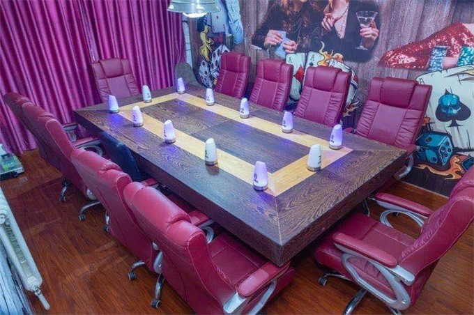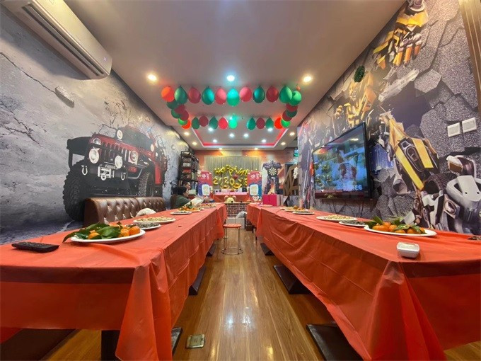 一层:赛级德州、娃娃机、游戏机,台球,各种桌游,厨房,大厅用餐的地方(一层大厅同时也能唱k,年会投影,80寸液晶电视,150投影幕布可同屏)。