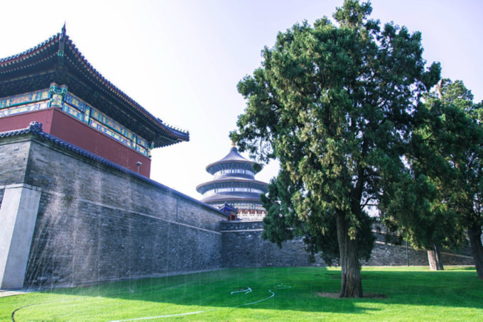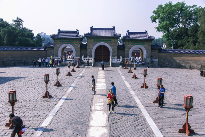 天坛,在 北京 市南部,东城区 永定 门内大街东侧。占地约273万平方米。天坛始建于明永乐十八年(1420年),清乾隆、光绪时曾重修改建。为明、清两代帝王祭祀皇天、祈五谷丰登之场所。天坛是圜丘、祈谷两坛的总称,有坛墙两重,形成内外坛,坛墙南方北圆,象征天圆地方。主要建筑在内坛,圜丘坛在南、祈谷坛在北,二坛同在一条南北轴线上,中间有墙相隔。圜丘坛内主要建筑有圜丘坛、皇穹宇等等,祈谷坛内主要建筑有祈年殿、皇乾殿、祈年门等