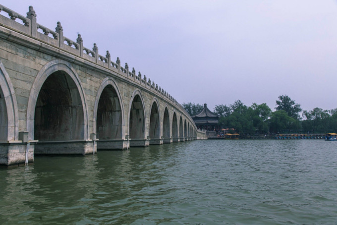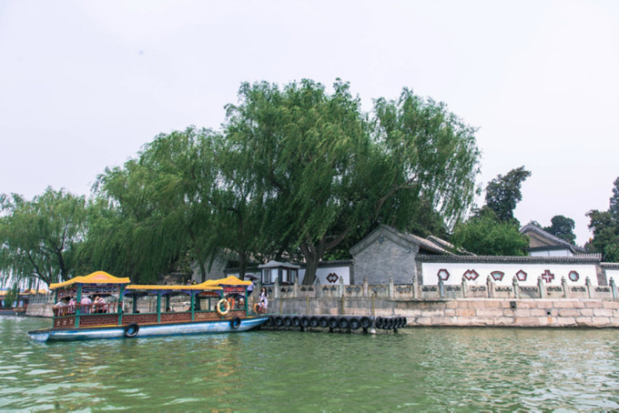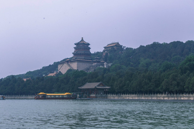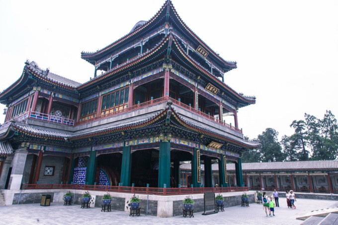 颐和园, 中国 清朝时期皇家园林,前身为清漪园,坐落在 北京 西郊,距城区十五公里,占地约二百九十公顷,与圆明园毗邻。它是以 昆明 湖、万寿山为基址,以 杭州 西湖为蓝本,汲取 江南 园林的设计手法而建成的一座大型山水园林,也是保存最完整的一座皇家行宫御苑,被誉为“皇家园林博物馆”,也是国家重点旅游景点。