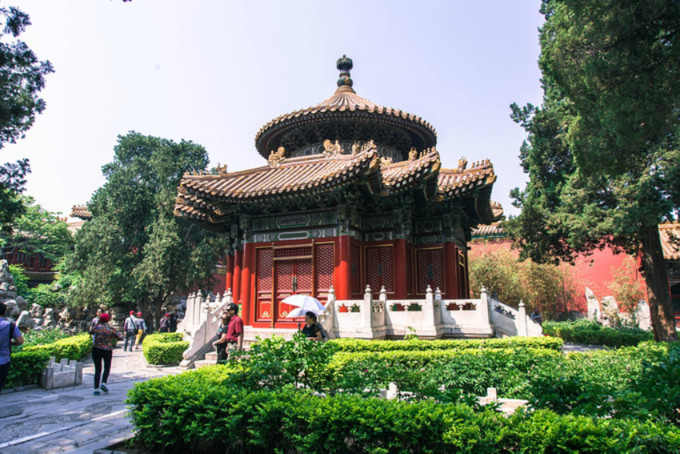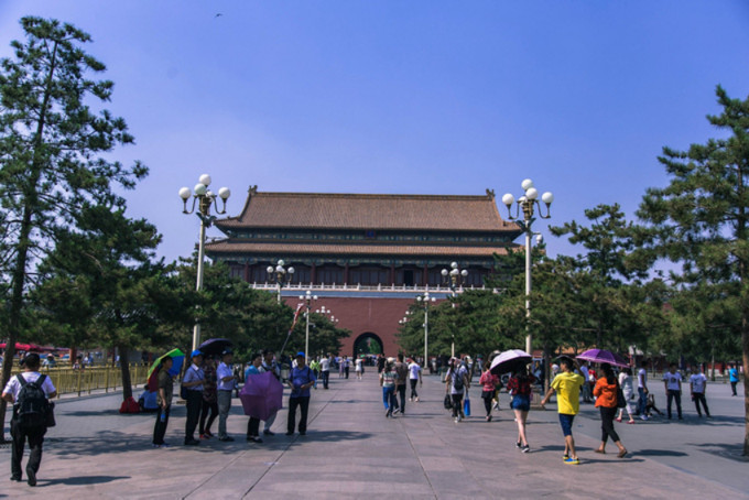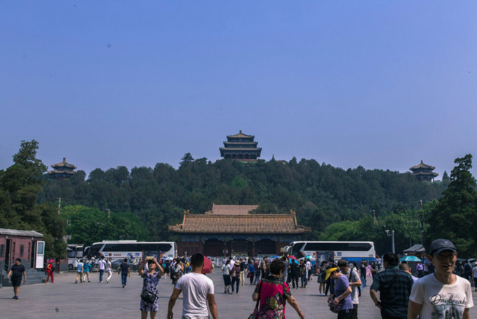 故宫的出口,马路对面即景山公园的入口,最上面的万春亭上可以看到整个故宫的全景