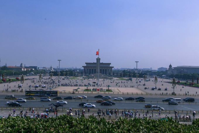 站在天安门城楼上看天安门广场,脑中想像着国庆阅兵的场景,顿时有了伟人的感觉