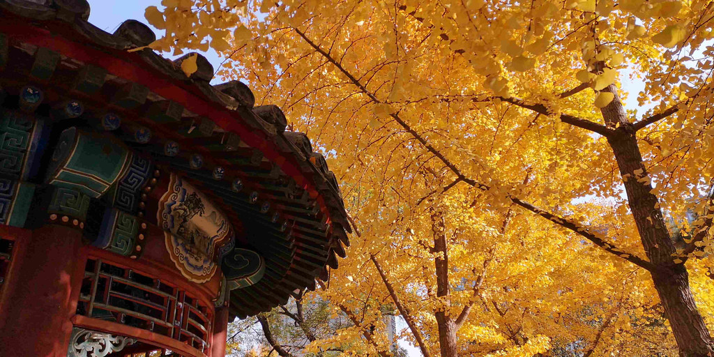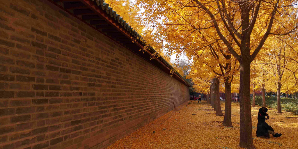 碧云天,黄叶地,一路洒落于古老的坛庙内,似是一路黄金铺就的道路。