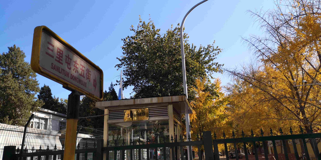 由于比较清静,银杏树的美景在这里显得更加美丽。漫步在三里屯东五街,特别像是在某个电影中的结局画面之中。