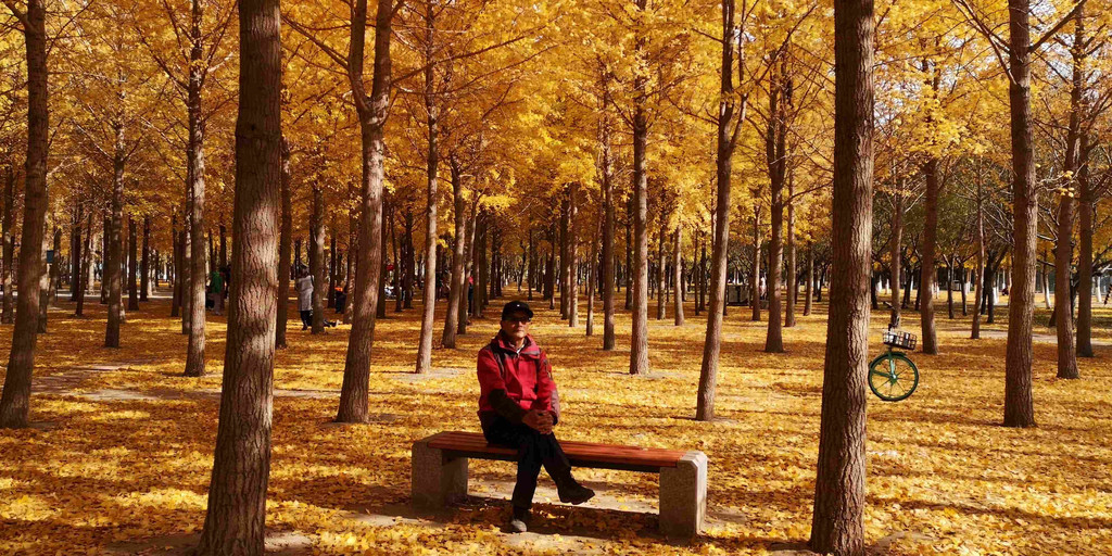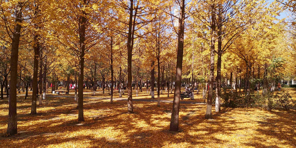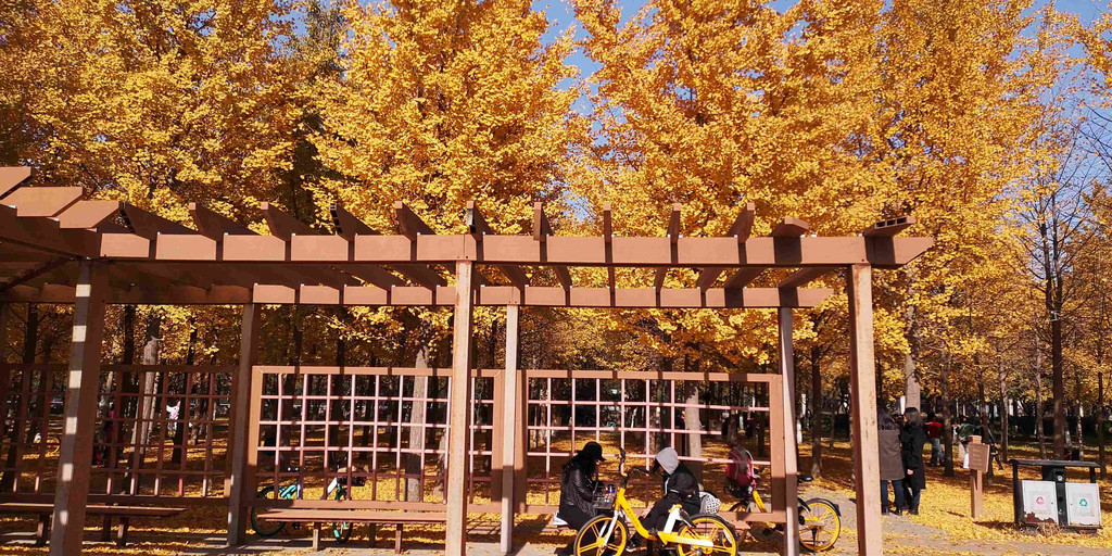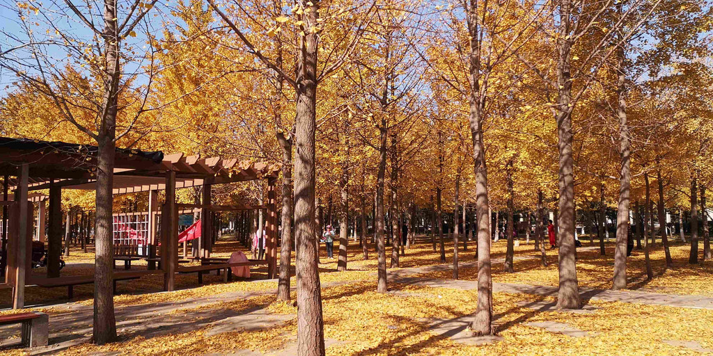 天元公园银杏林的树龄并不长,但贵在面积比钓鱼台银杏大道大了好几倍。