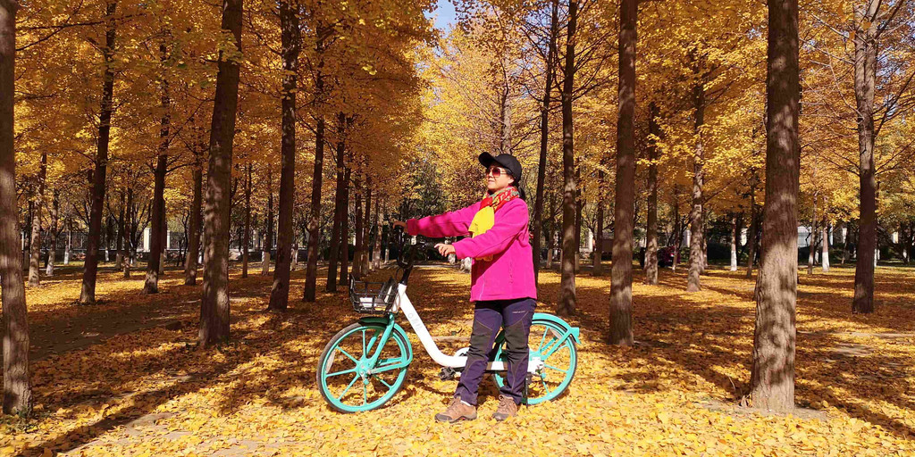 抬眼远眺,"摄影的"、"拍婚纱照的"、"散步的"、"捡银杏果儿的"、"带宠物遛弯"的人们融在这片美景中,温馨极了。