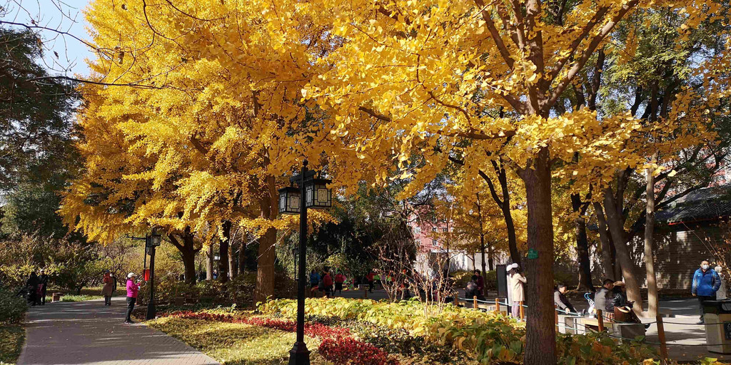 月坛公园面积不大,但这几年地坛公园的银杏已成为“网红打卡地”。