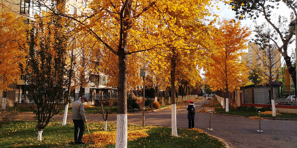 由于不打扫银杏落叶,道路上铺满了金黄,脚踏片片金叶,耳朵听到脆脆的声响,眼前满是捕捉美好的镜头。