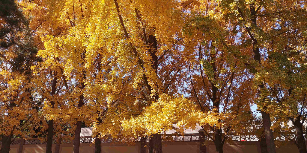 京城还有张各庄(北京最大的银杏林)、常营公园、奥森公园、郭沫若纪念馆、北大清华、北京林业大学、中山公园、八大处公园、红螺寺、潭柘寺(帝王树)、西峰寺、五塔寺、北京植物园、大觉寺、颐和园、高里掌村、皇城根遗址公园、将府公园、国家图书馆、等地的成片的银杏林没能观赏到,只能等待来年继续。