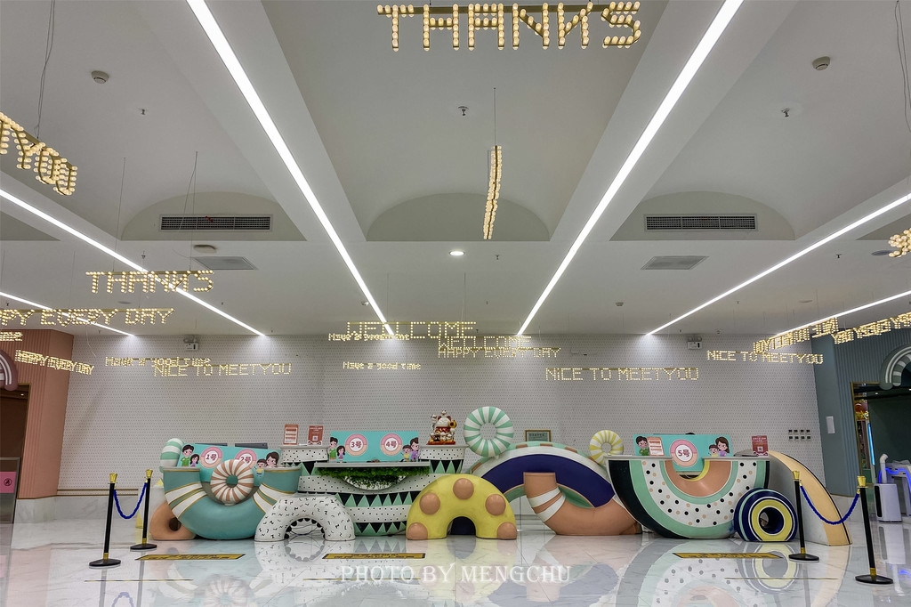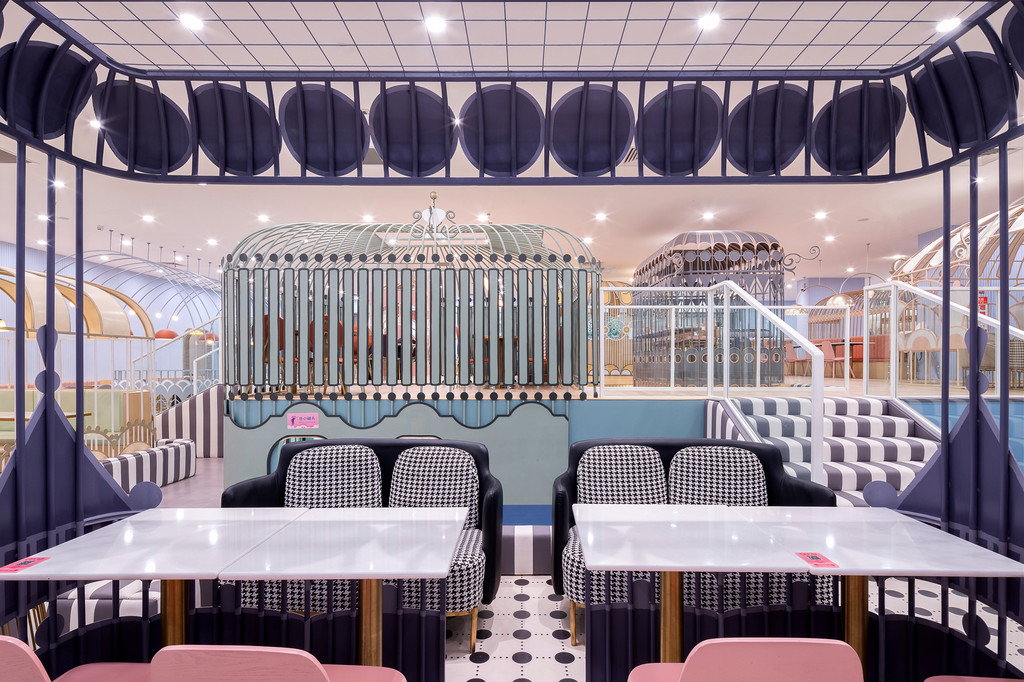 全年龄段通吃的淘气堡是乐园中人气最高的区域,滑梯、爬架、风筒、投掷游戏,这里自成一片梦幻的小世界;粉蓝白的配色非常清新,拍照也很有高级感。