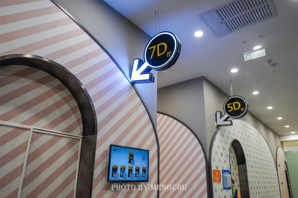 动感影院单独在一处走廊,容易被错过,但真的超精彩!5D的花灵谷,仿佛坐上了真实的过山车,上上下下左左右右还会喷水,小丫头玩了三遍还意犹未尽;7D夺宝猎人可以体验在模拟场景中玩射击游戏的快乐,非常受男孩子欢迎!