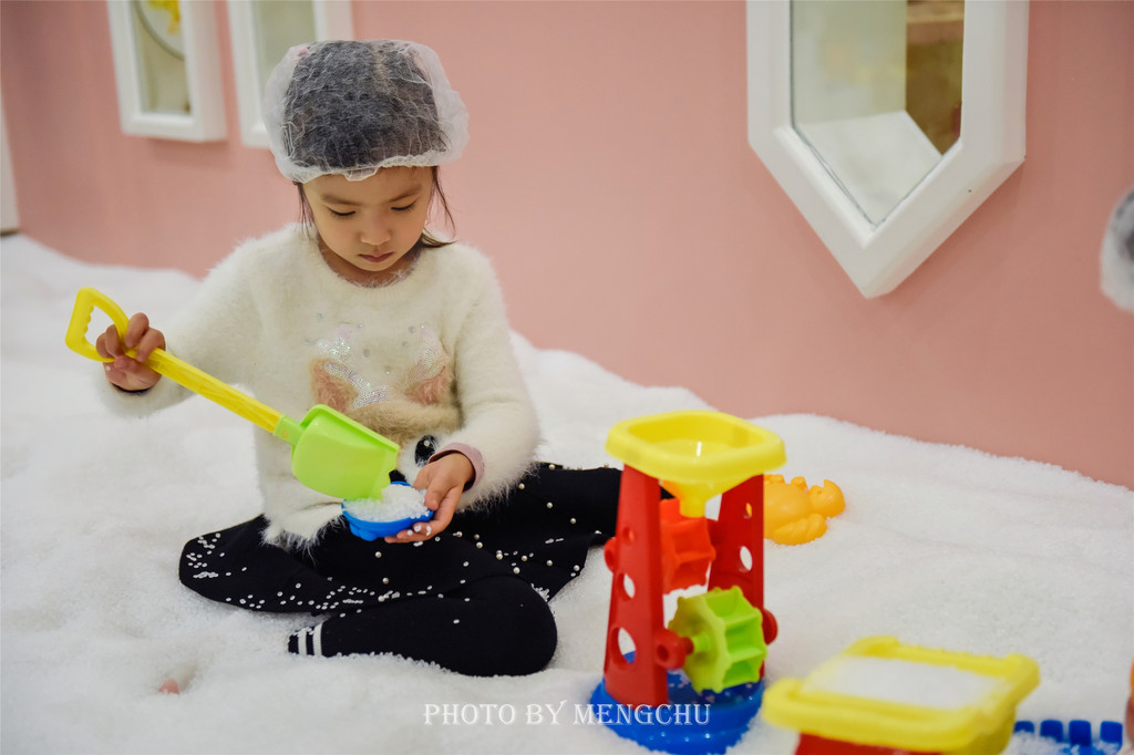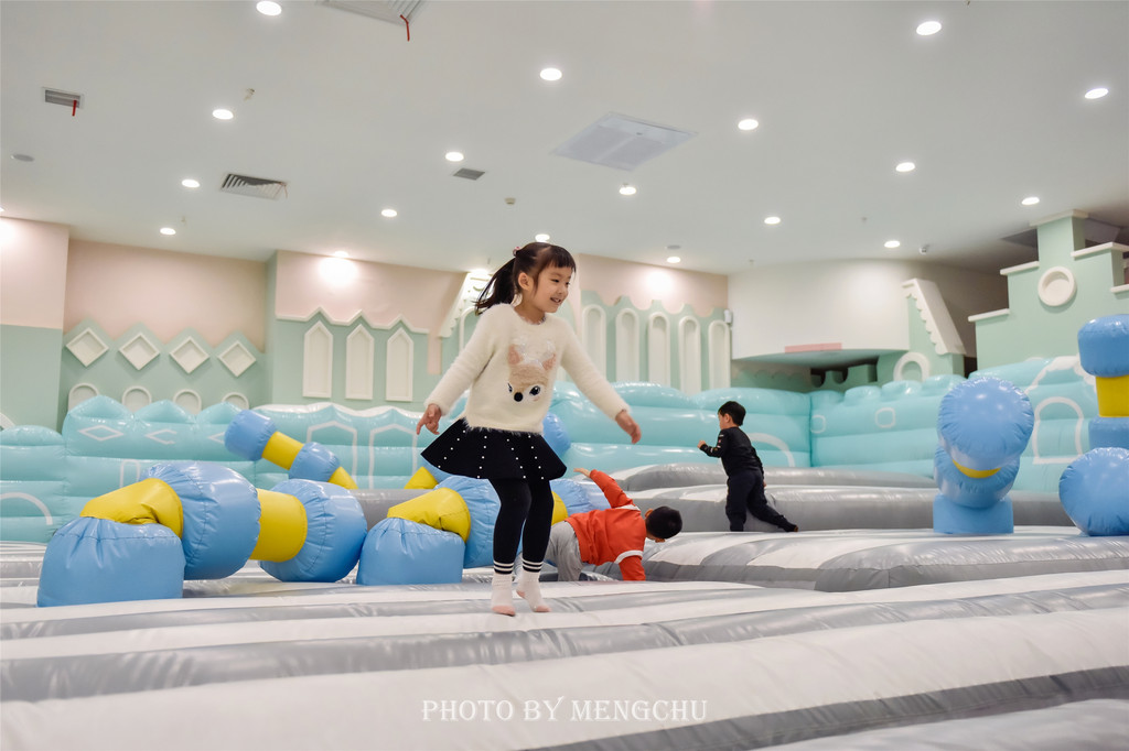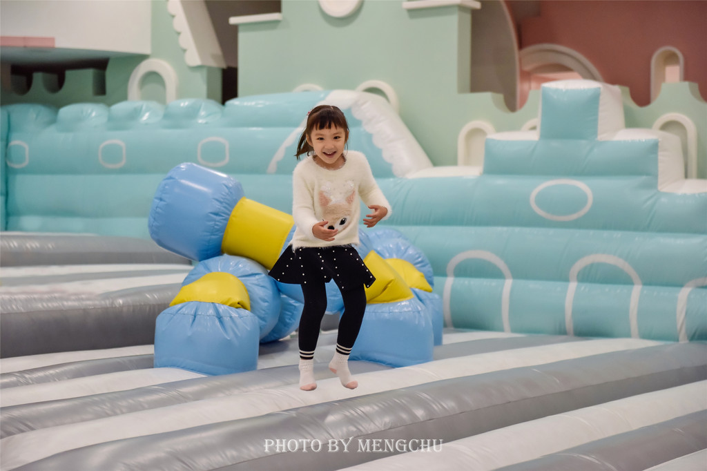 沙池和淘气堡也是相对更适合年龄稍小孩子的区域。雪白色的沙池,里面都是像大米粒一样的聚乙烯颗粒,安全无毒,没有味道,而且拍照也非常上镜!淘气堡的面积很大,虽然我一直不能理解充气乐园的乐趣所在,但是挡不住小丫头喜欢啊,一进去就像上了马达一样能蹦上半个小时,难得可以在外面安心地刷会儿手机了……