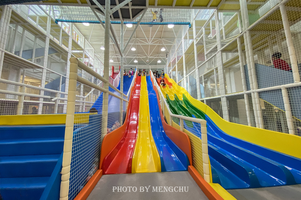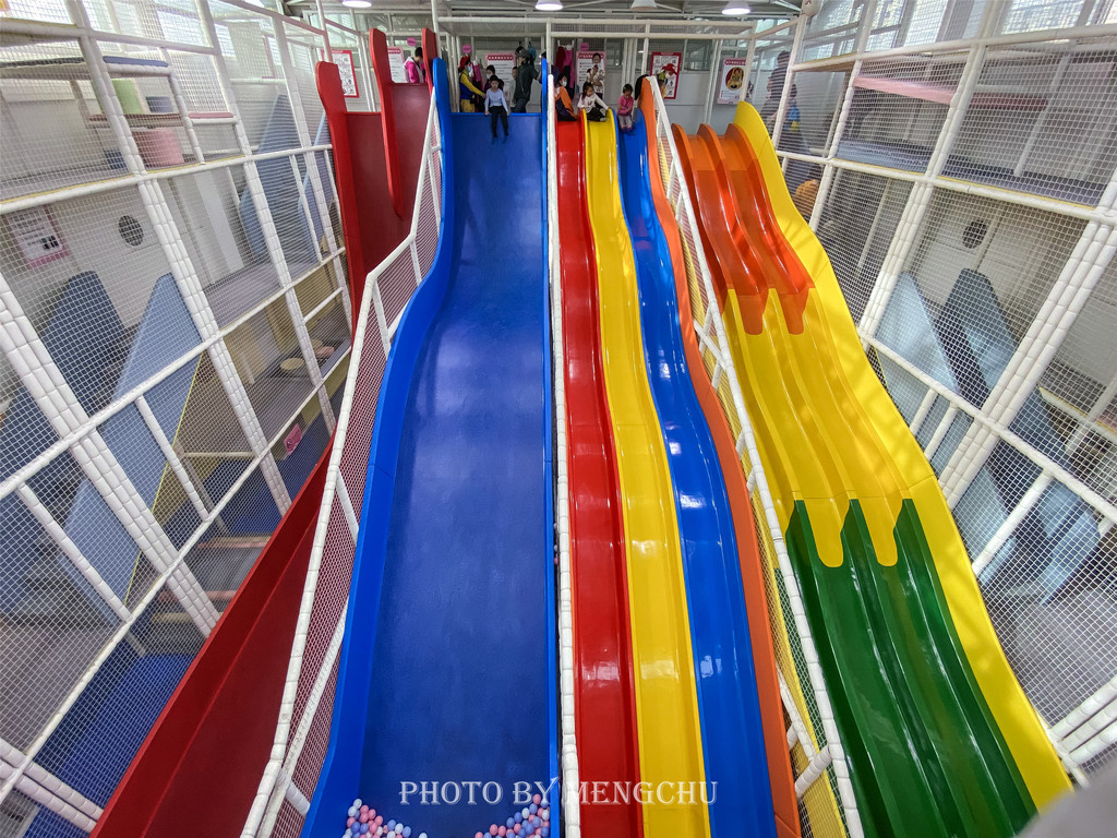从滑梯乐园开始就进入了“动”的区域,到处都是孩子们的嬉闹欢笑。彩虹大滑梯不仅颜值高而且超好玩;90°的垂直滑梯就要考验孩子们的勇气了;还有可以坐着雪圈滑下来的指压板滑梯;围绕着滑梯的攀爬架如迷宫一般,梦幻的编织网错综复杂,任由孩子们去自行探索。