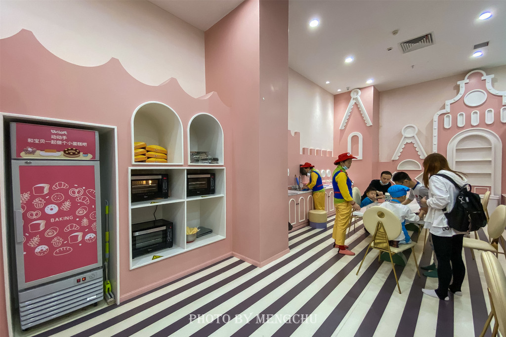 乐园里还设置了多个亲子互动体验项目,在手工教室里可以制作各种有趣的小玩意,在烘焙坊可以全家人一起做披萨、烤饼干;在绘本阅读区可以安静地陪小朋友读一会儿书。