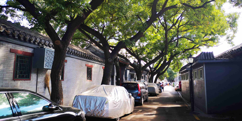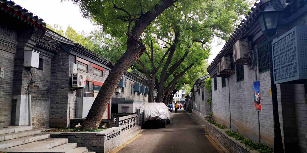 巷内大树成荫,展现出与大栅栏街不同的风貌。