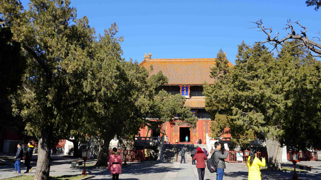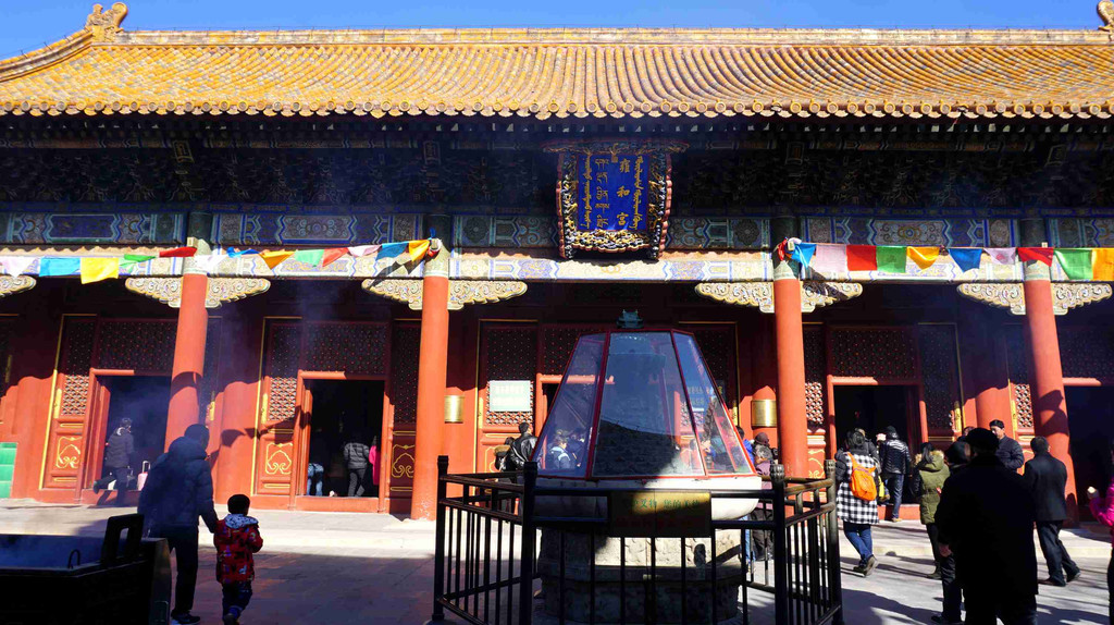 雍和宫与紫禁城皇宫一样规格,殿宇为黄瓦红墙。乾隆年间,雍和宫改为喇嘛庙,成了清朝中后期全国规格最高的一座佛教寺院。
