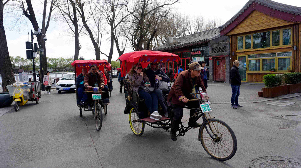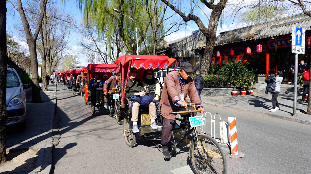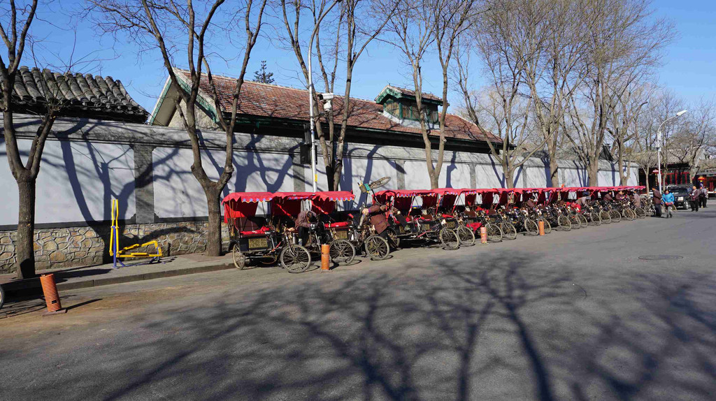 北京对坐三轮车游胡同进行了规范管理,三轮车都是从恭王府门前的胡同统一出发。