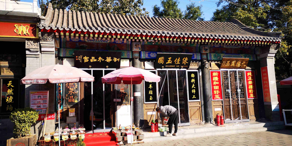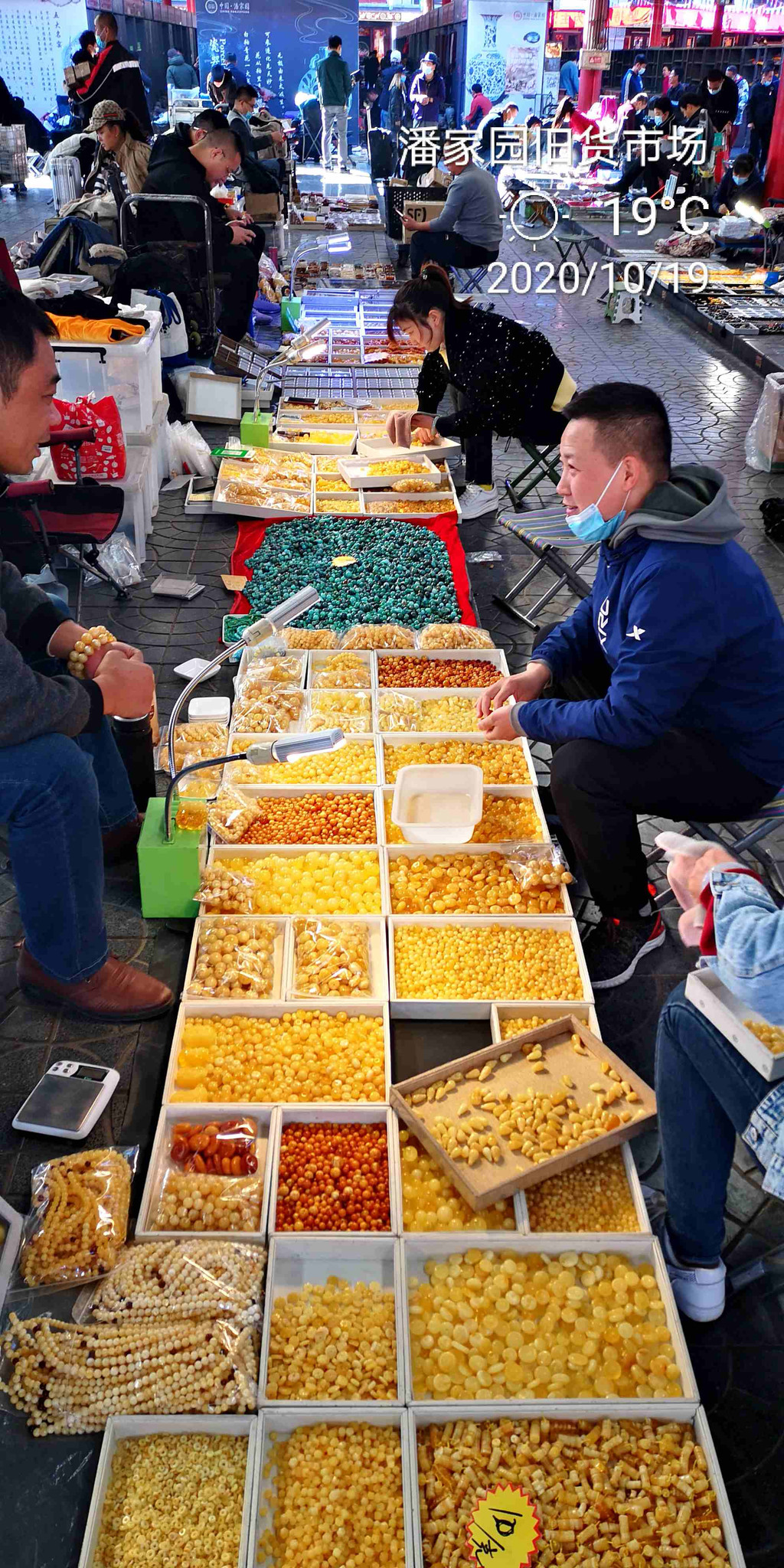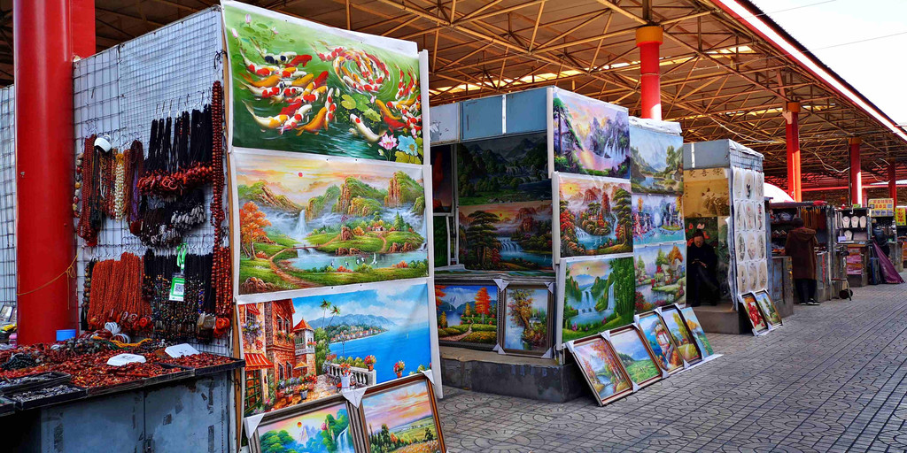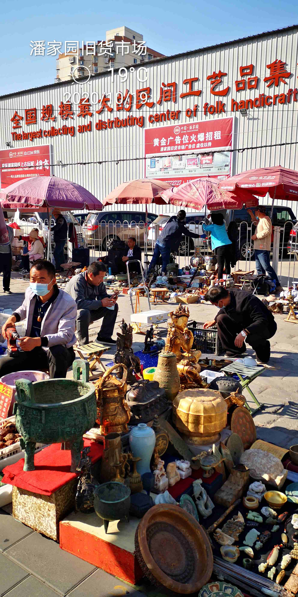 这里,工艺品打堆卖买(也可零售),摊位上座满了全国各地进货的摊主。搞不好,你手中的旅游产品,也出自于潘家园。