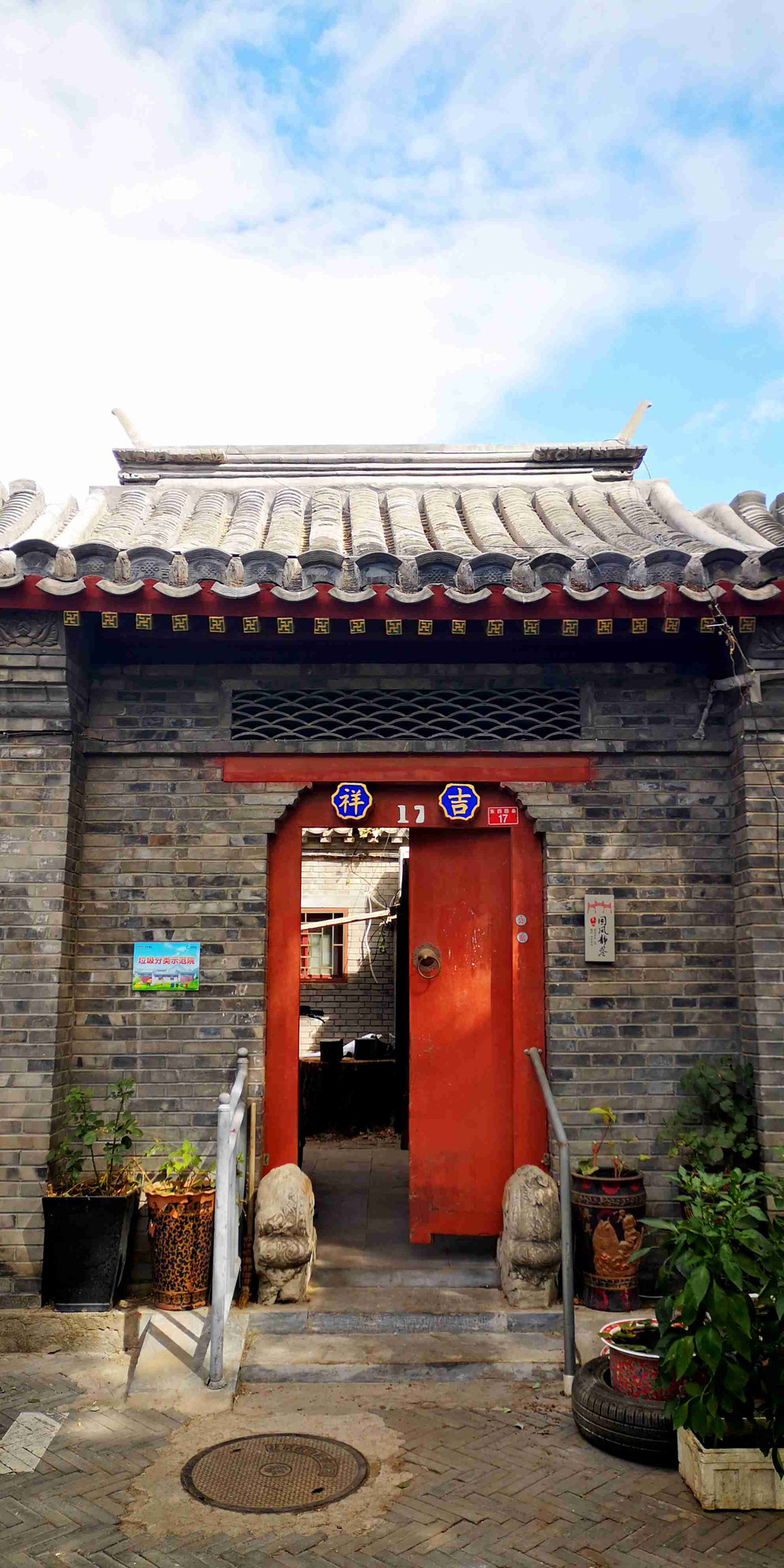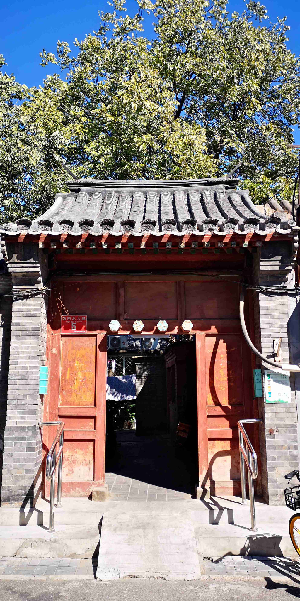 胡同内的多数四合院不能入内参观,但可以从大门看出往日的辉煌。大门是旧社会主人地位的一个表征,很有讲究。