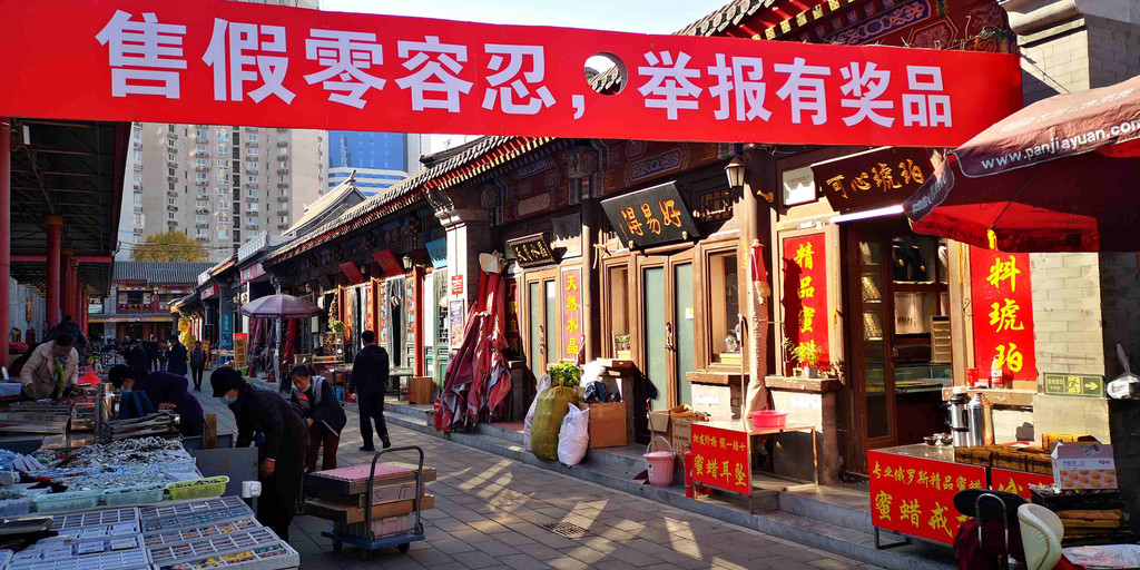 街上有便宜坊、天兴居炒肝、锦芳小吃、永丰莜面、烤肉季、金糕张、天源酱园、炸糕辛、力力餐厅、锅贴王等老店铺。
