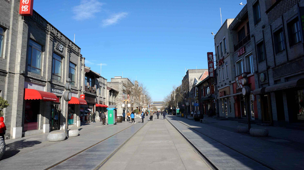 经过不断改建,如今前门大街两侧都成了商铺,