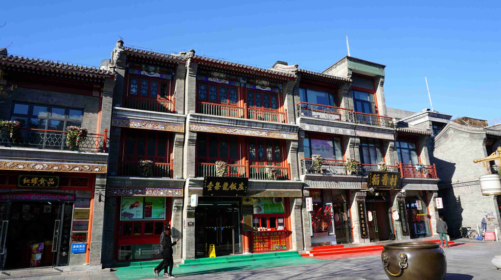 烟袋斜街的两家北京老字号:清真菜餐馆“烤肉季”和旁边的北京最早的高端鲁菜酒楼“庆云楼饭庄”,都很有名气。